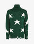 Pull col roulé motif étoiles finitions effilochées - Vert sapin