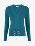 Pull à col V et boutons décoratifs - Bleu canard - 2