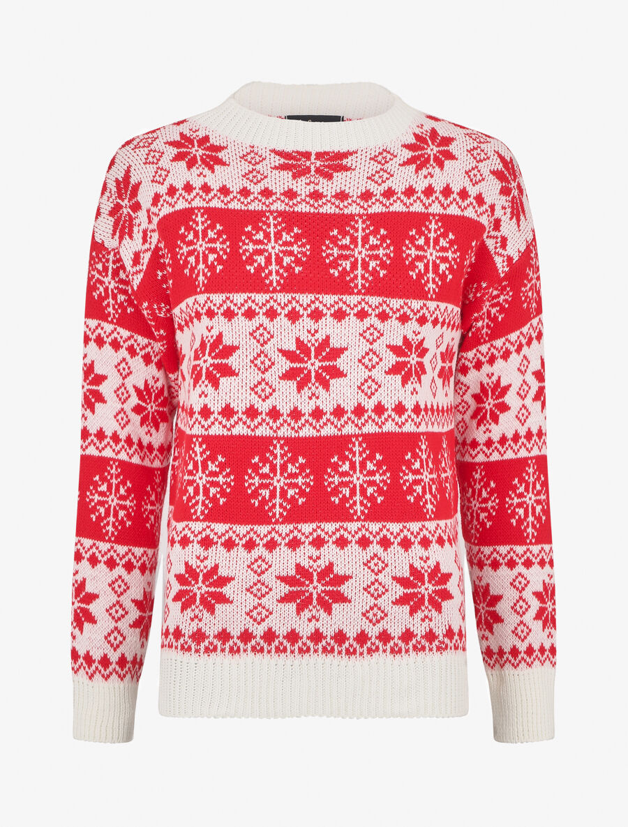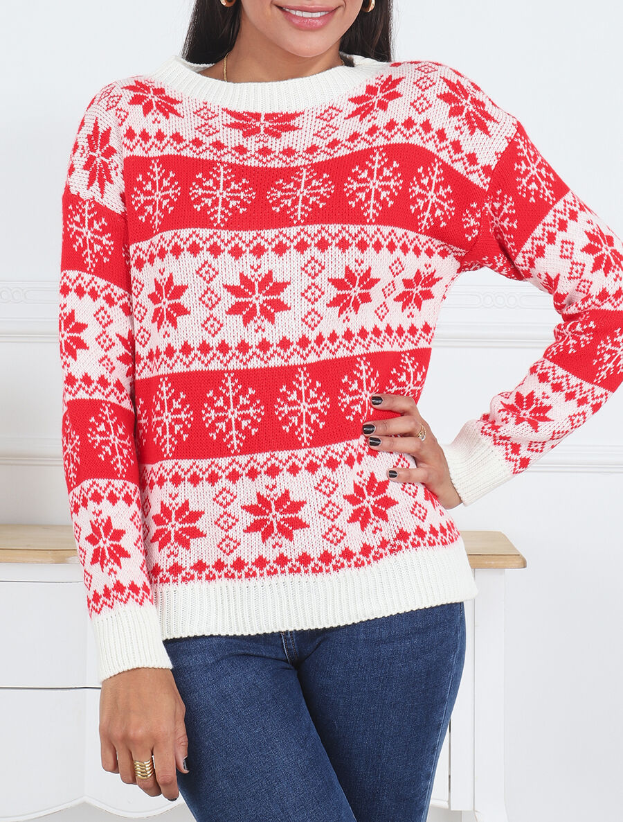 Pull flocons de neige col rond - Blanc