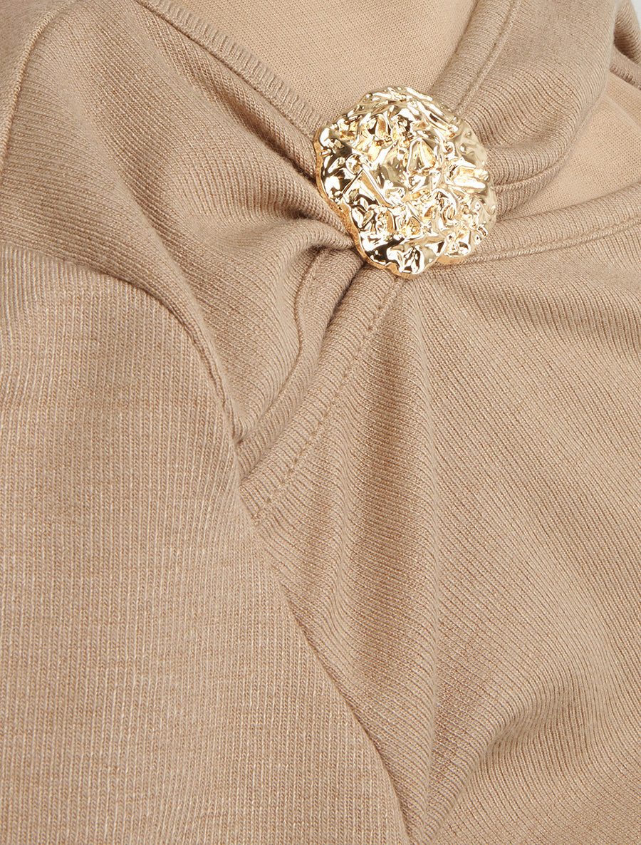 Découvrez ce pull fin qui allie raffinerie et modernité grâce à son empiècement bijou au col rond. Sa poitrine ajourée apporte une touche de légèreté et de féminité à sa coupe droite intemporelle. Les manches longues assurent confort et polyvalence tout au long de la saison. Confectionné en Italie avec un mélange de viscose, polyester et nylon, ce pull taupe se porte aussi bien au bureau qu'en soirée décontractée. Sa finesse et ses détails subtils en font une pièce essentielle pour composer des tenues sophistiquées au quotidien.