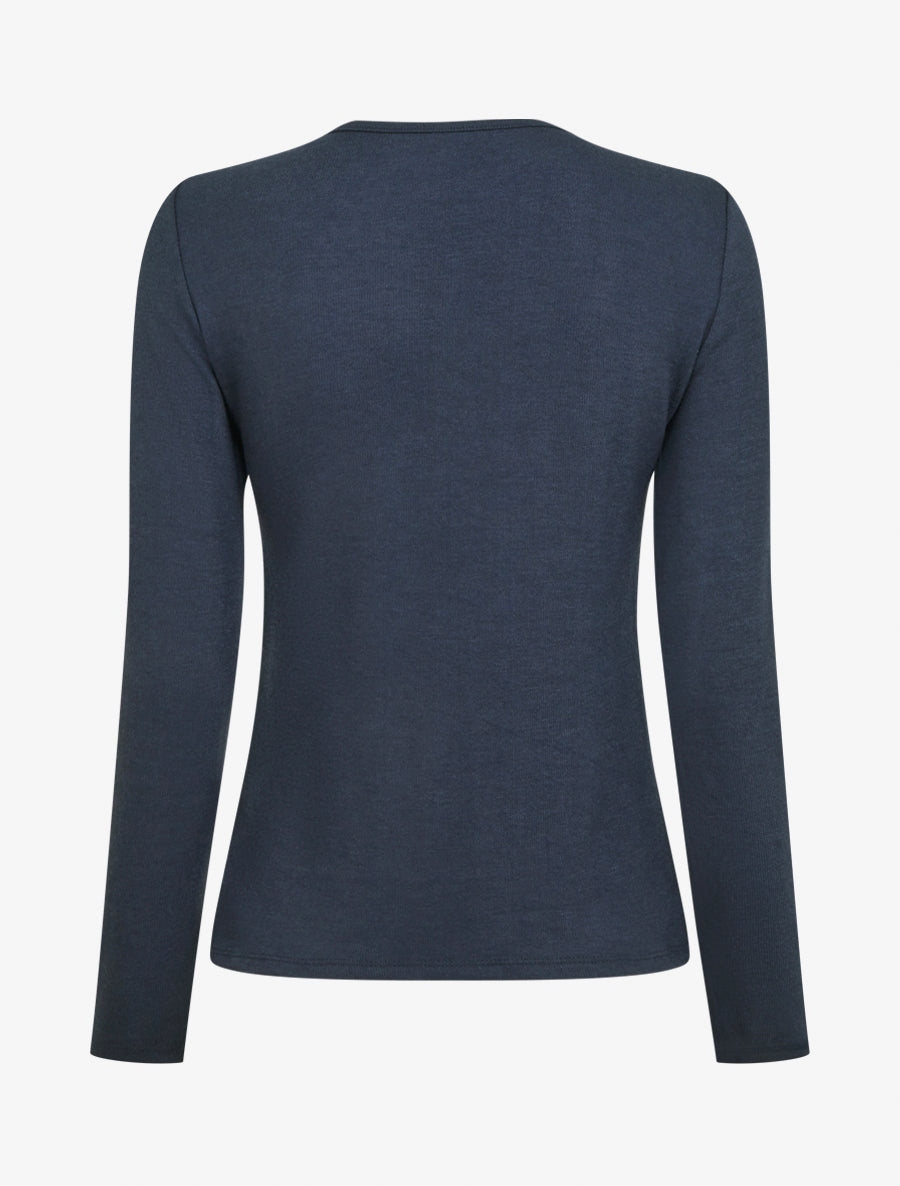 Découvrez ce pull fin marine à la coupe droite intemporelle, sublimé par un raffinement discret. Son col rond rehaussé d'un empiècement bijou apporte une touche précieuse, tandis que la poitrine ajourée crée un jeu de transparence délicat. Les manches longues assurent confort et élégance au quotidien. Confectionné en Italie avec un savoir-faire reconnu, ce pull de 58 cm se porte aussi bien au bureau qu'en soirée décontractée. Une pièce polyvalente qui enrichit votre garde-robe avec style et modernité.
