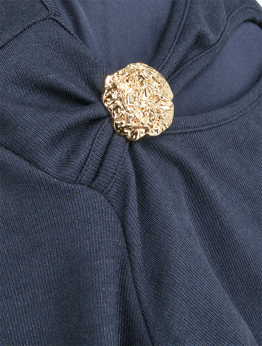 Pull ajouré à empiècement bijou - Marine - 3