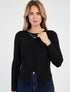 Pull côtelé empiècement bijou col rond - Noir