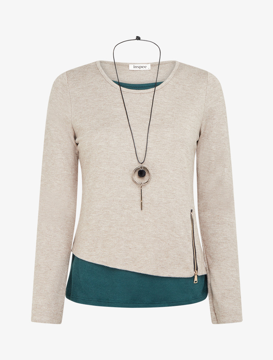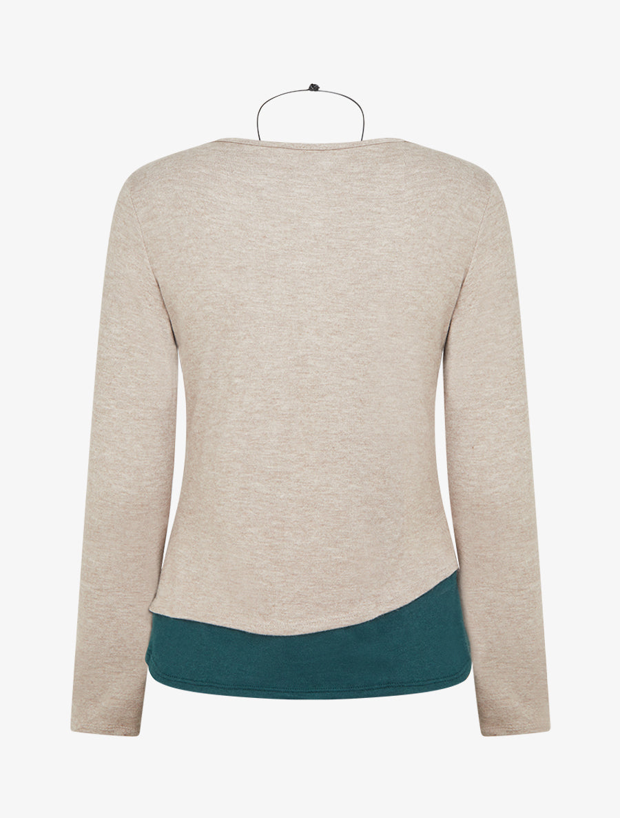Pull bicolore zippé sur le côté - Taupe/vert sapin - 2