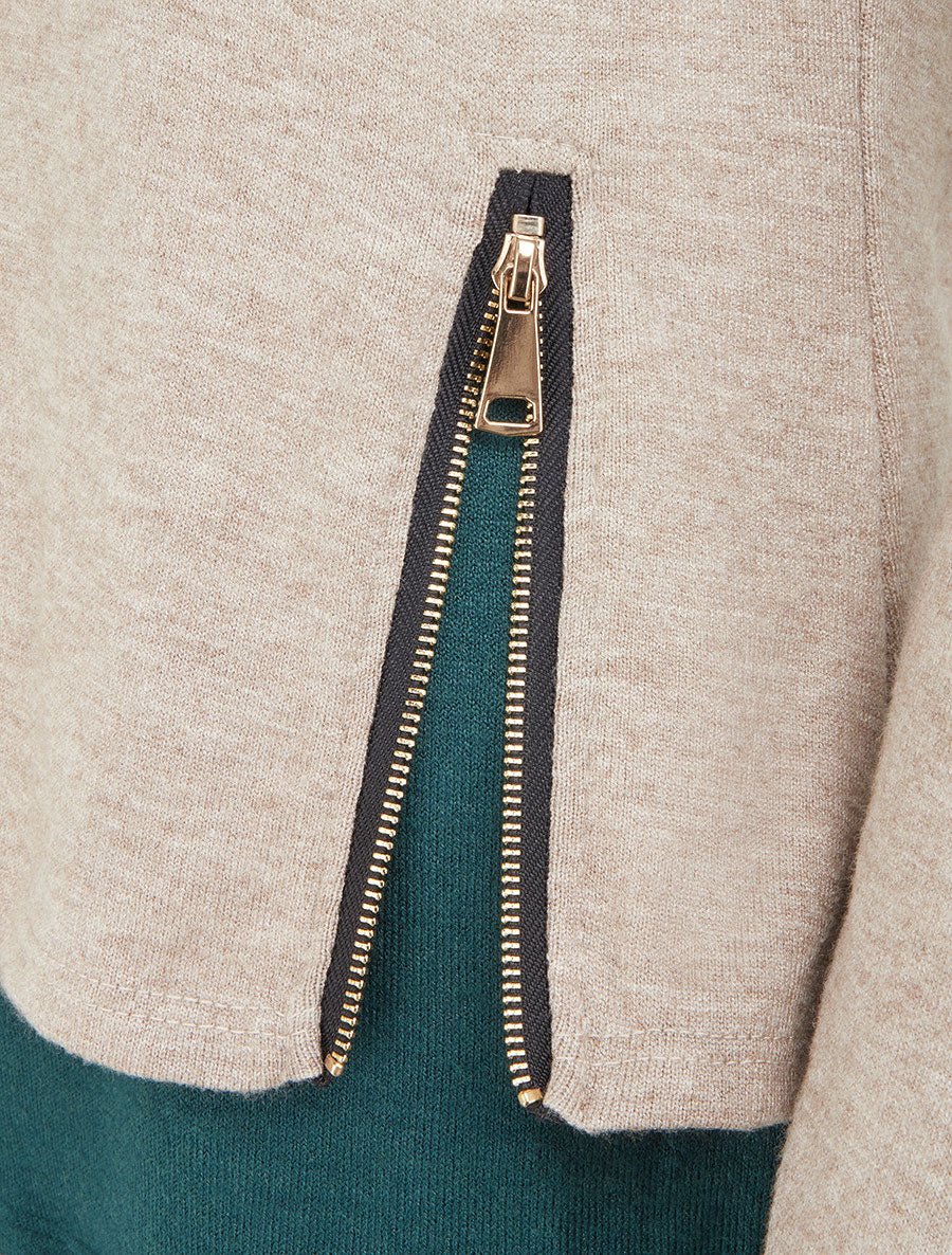 Pull bicolore zippé sur le côté - Taupe/vert sapin - 1