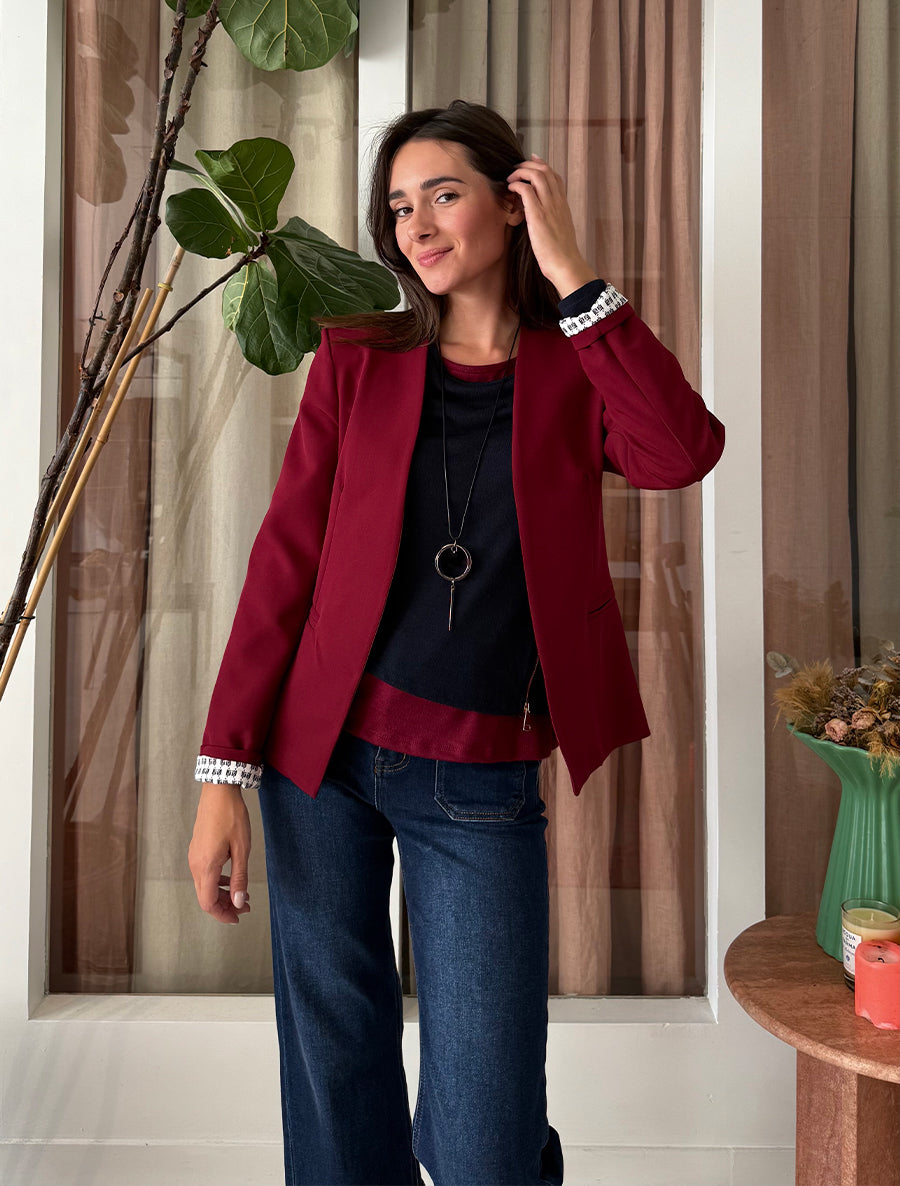 Pull bicolore zippé sur le côté - Marine/bordeaux - 2