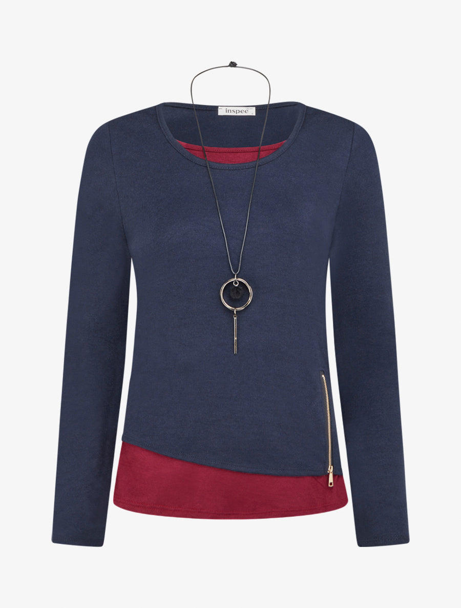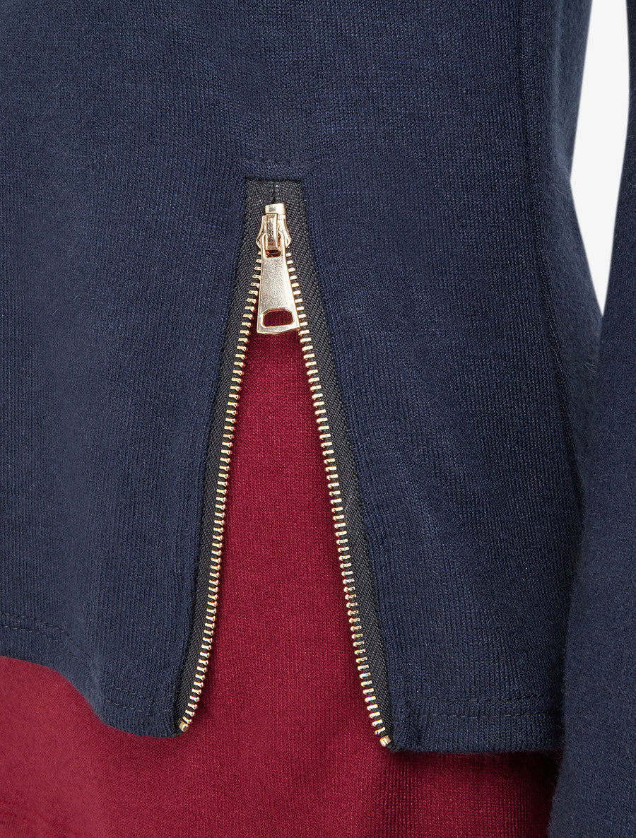 Pull bicolore fermeture zippée latérale - Marine/bordeaux