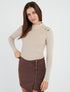 Découvrez ce pull côtelé à la coupe ajustée qui sublime votre silhouette avec élégance. Son col montant apporte une touche sophistiquée, tandis que les boutons dorés décoratifs placés sur les épaules créent un détail mode distinctif. Les manches longues garantissent confort et style au quotidien. Confectionné dans un mélange de viscose, polyester et polyamide, ce pull beige offre une texture agréable et une tenue impeccable. Parfait pour vos journées professionnelles ou vos sorties décontractées, il se porte aussi bien avec un pantalon tailleur qu'un jean.