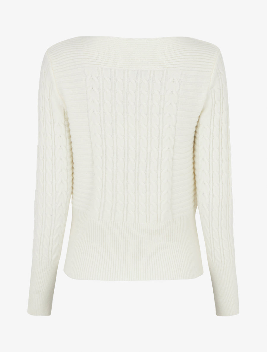 Pull droit à col bateau en maille fantaisie - Blanc - 3