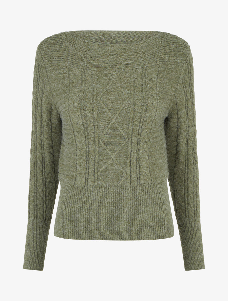 Pull droit à col bateau en maille fantaisie - Kaki - 2