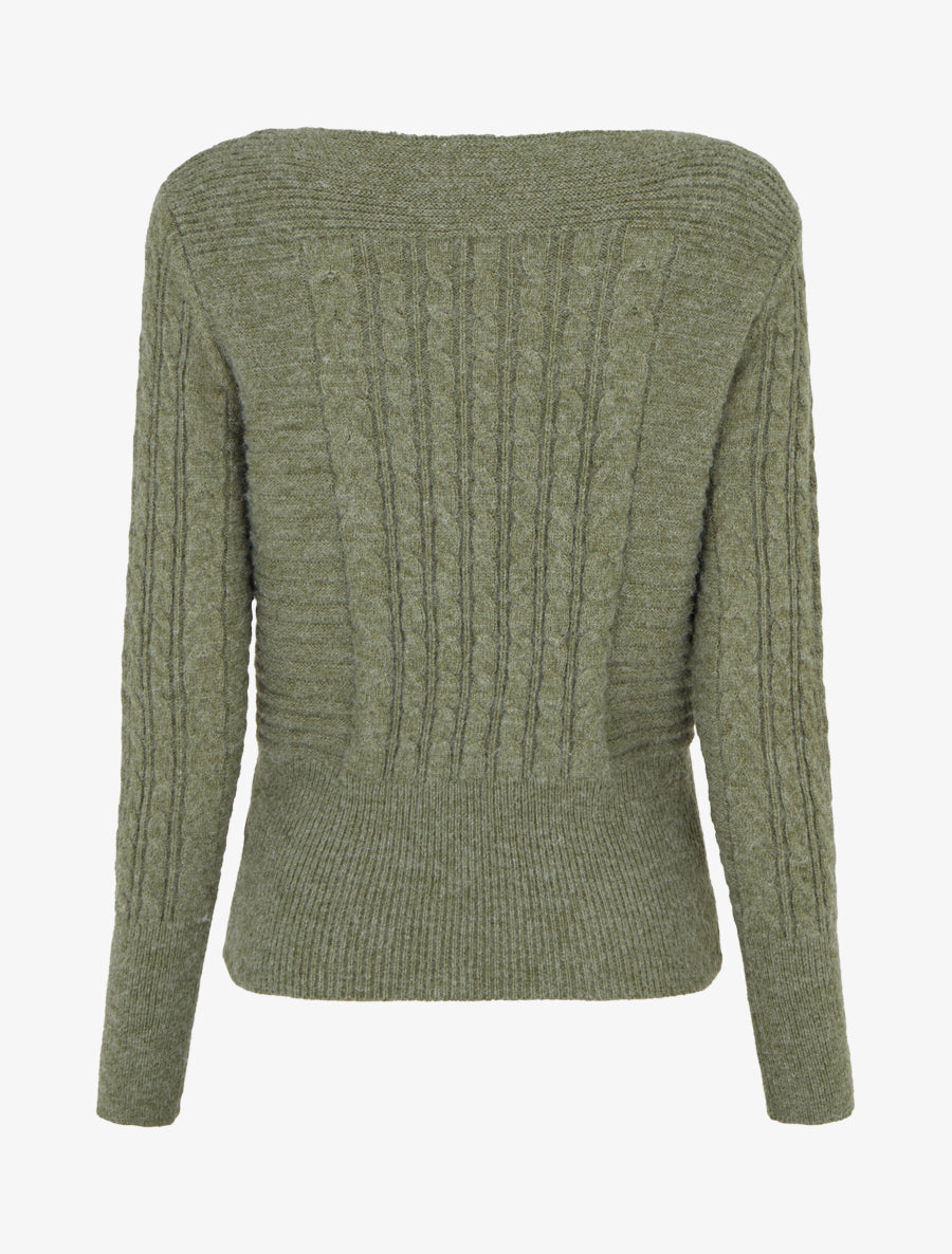 Pull droit à col bateau en maille fantaisie - Kaki - 3