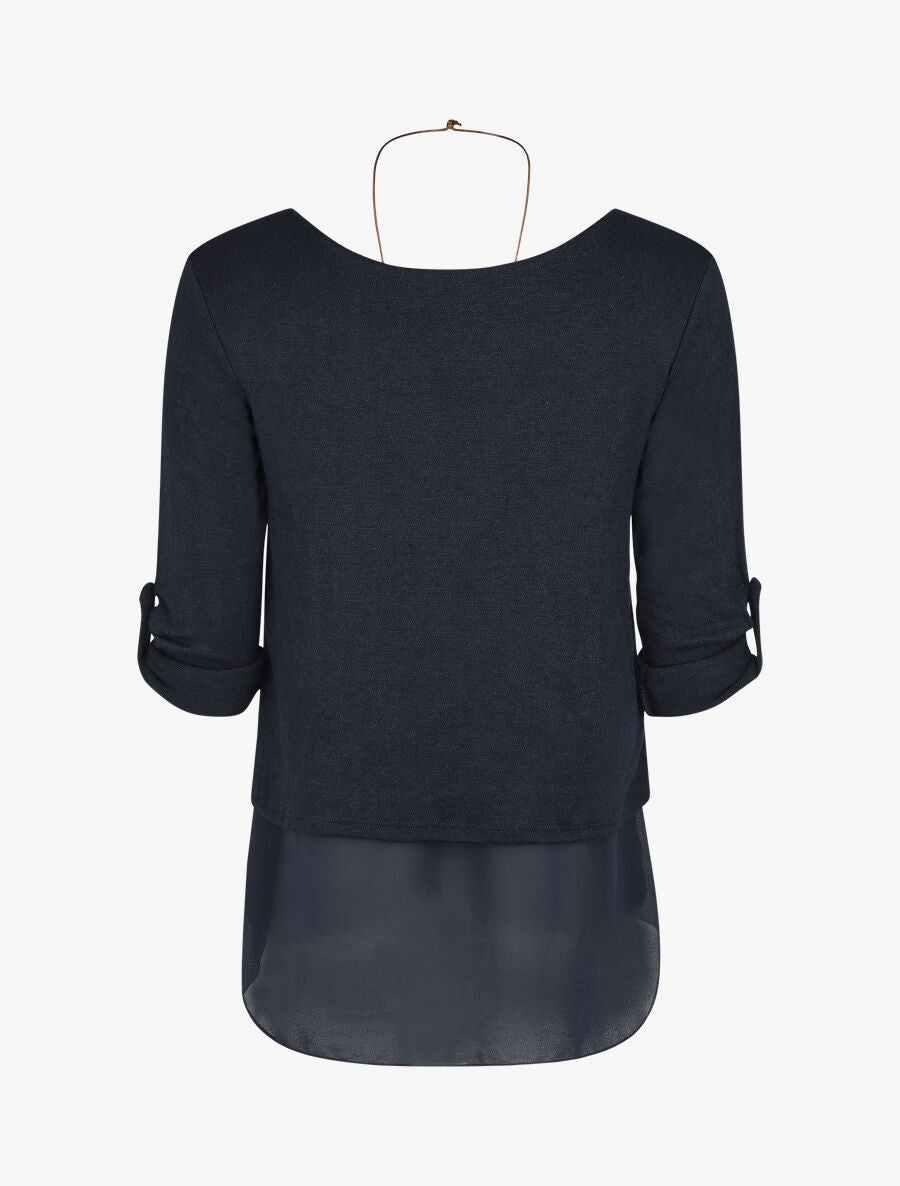 Pull droit uni doublure en voile - Marine - 2