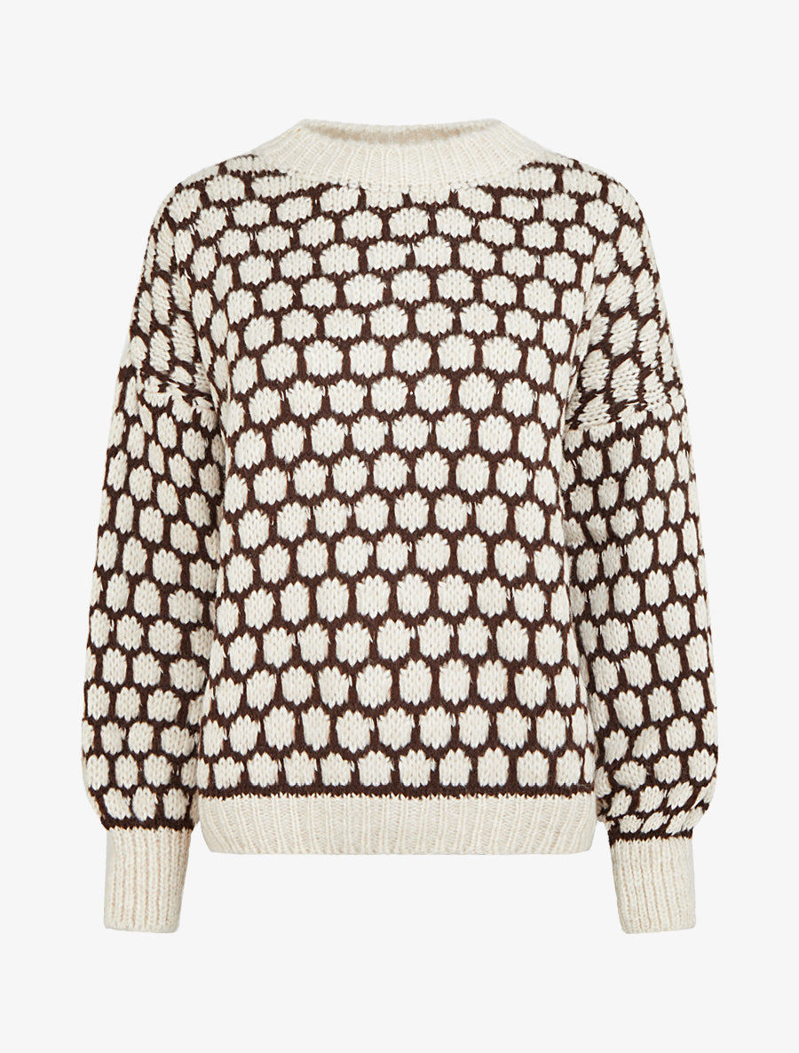 Craquez pour ce pull en grosse maille qui revisite le classique motif nid d'abeilles avec élégance. Sa coupe droite et son encolure ronde offrent un confort optimal, tandis que ses manches longues et ses bords côtelés apportent une touche structurée. Confectionné en Italie dans un mélange d'acrylique, nylon et mohair, ce pull allie chaleur et douceur. Parfait pour composer des tenues décontractées durant les journées fraîches, il se porte aussi bien avec un jean qu'un pantalon habillé. Une pièce intemporelle qui traverse les saisons avec style.