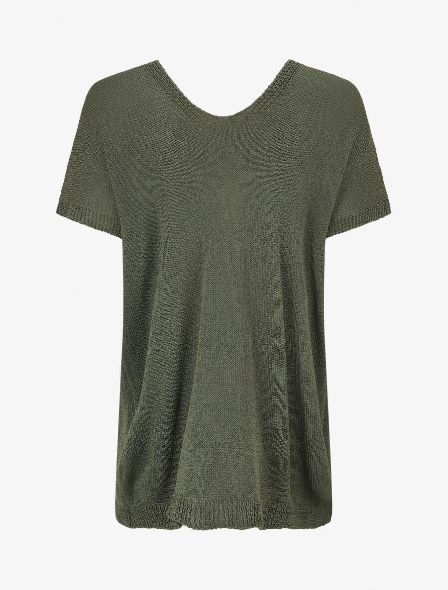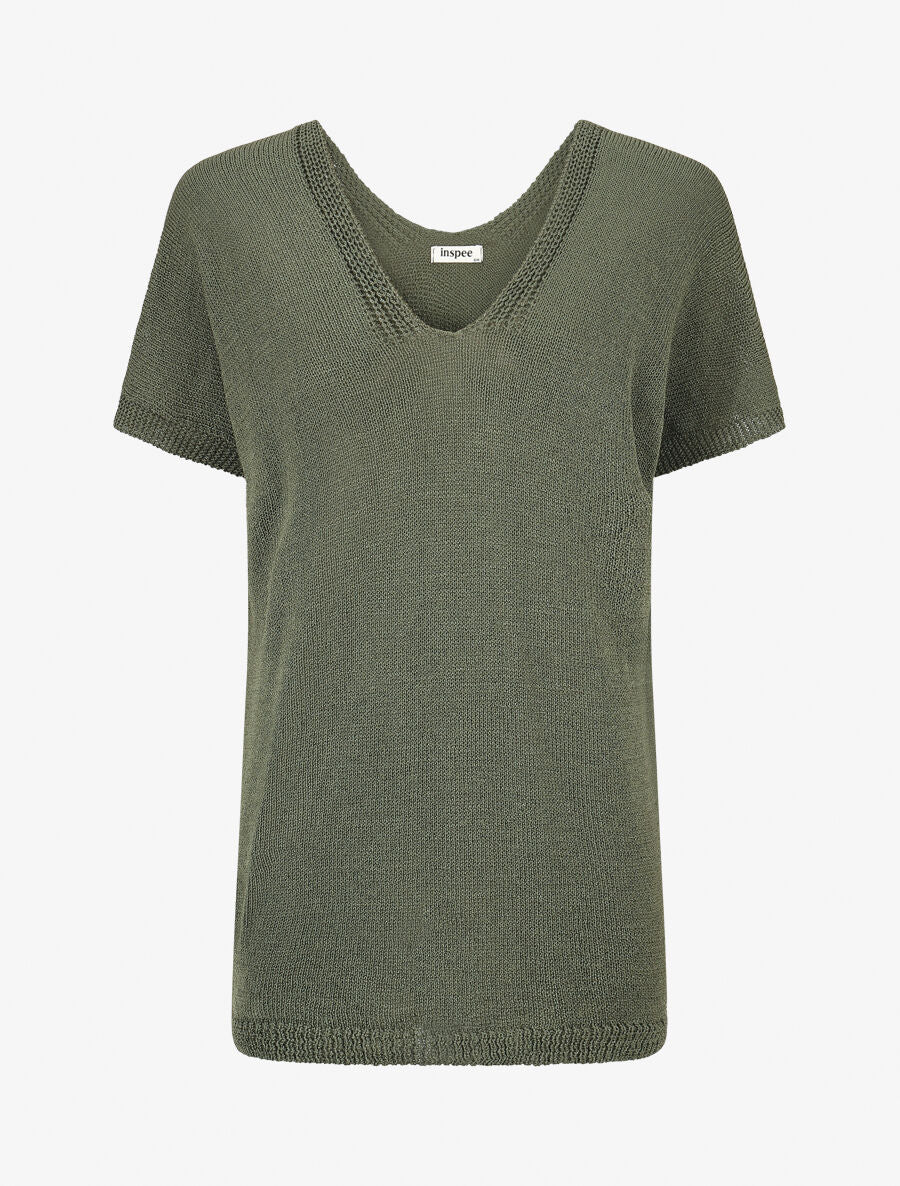 Pull en maille à manches courtes - Kaki - 2