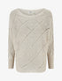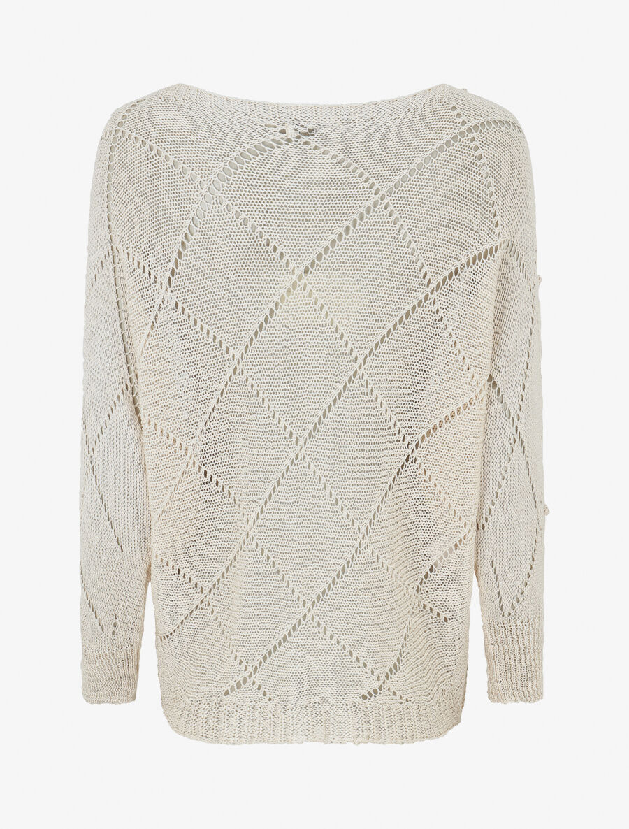 Pull en maille ajourée à motif quadrillé - Beige - 1