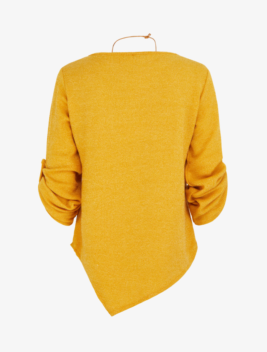 Pull fin asymétrique à manches longues retroussables - Jaune moutarde - 2