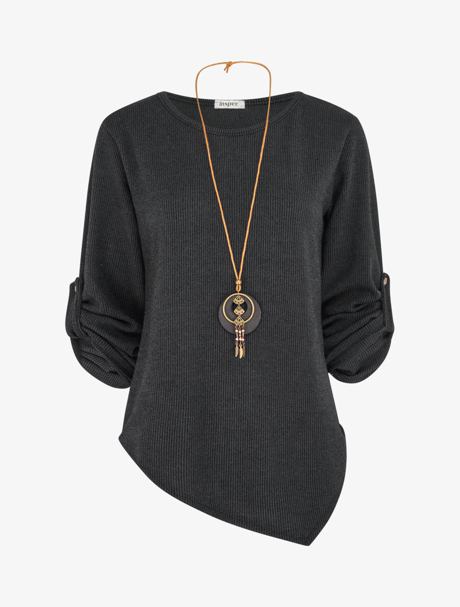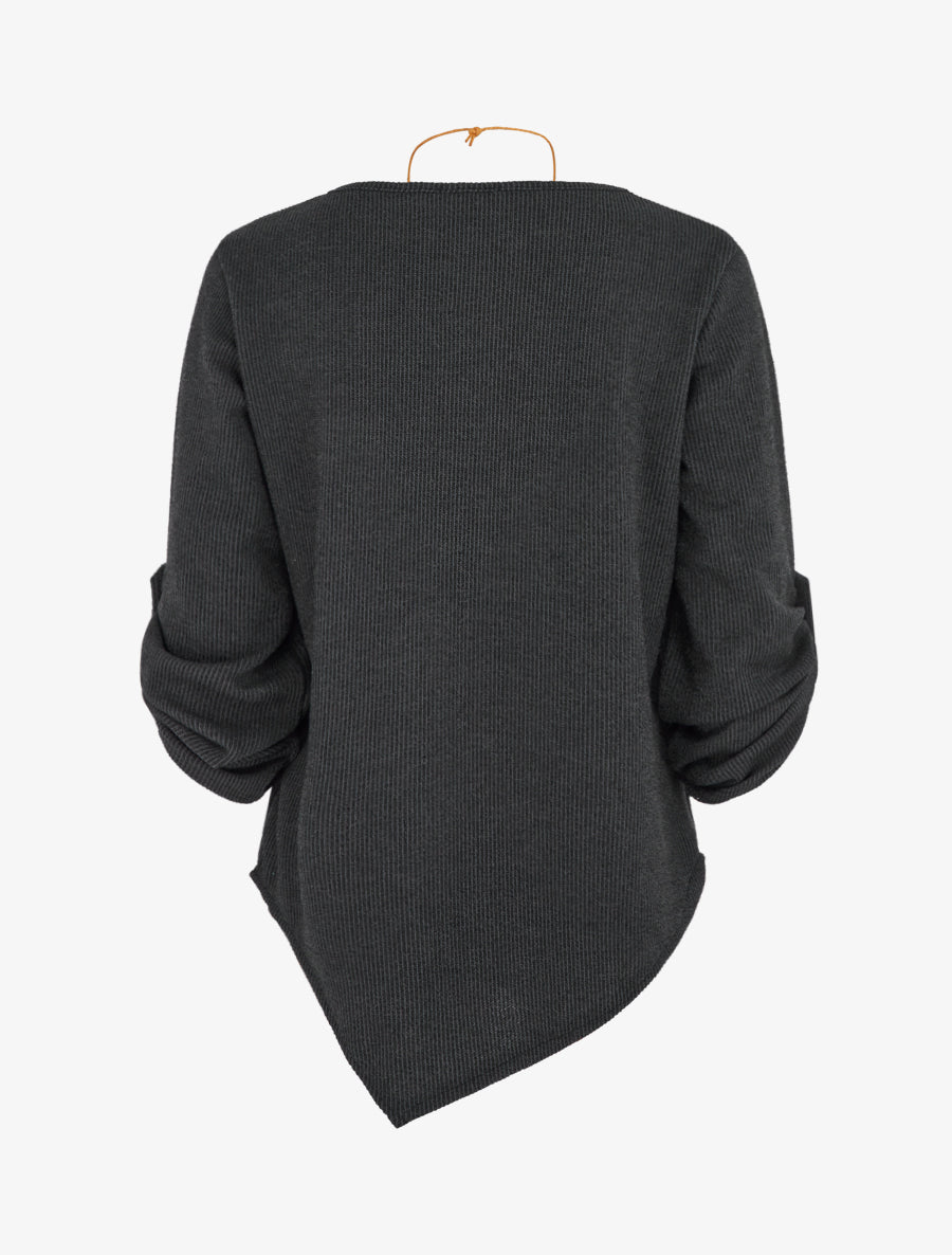 Pull fin asymétrique à manches longues retroussables - Noir - 2
