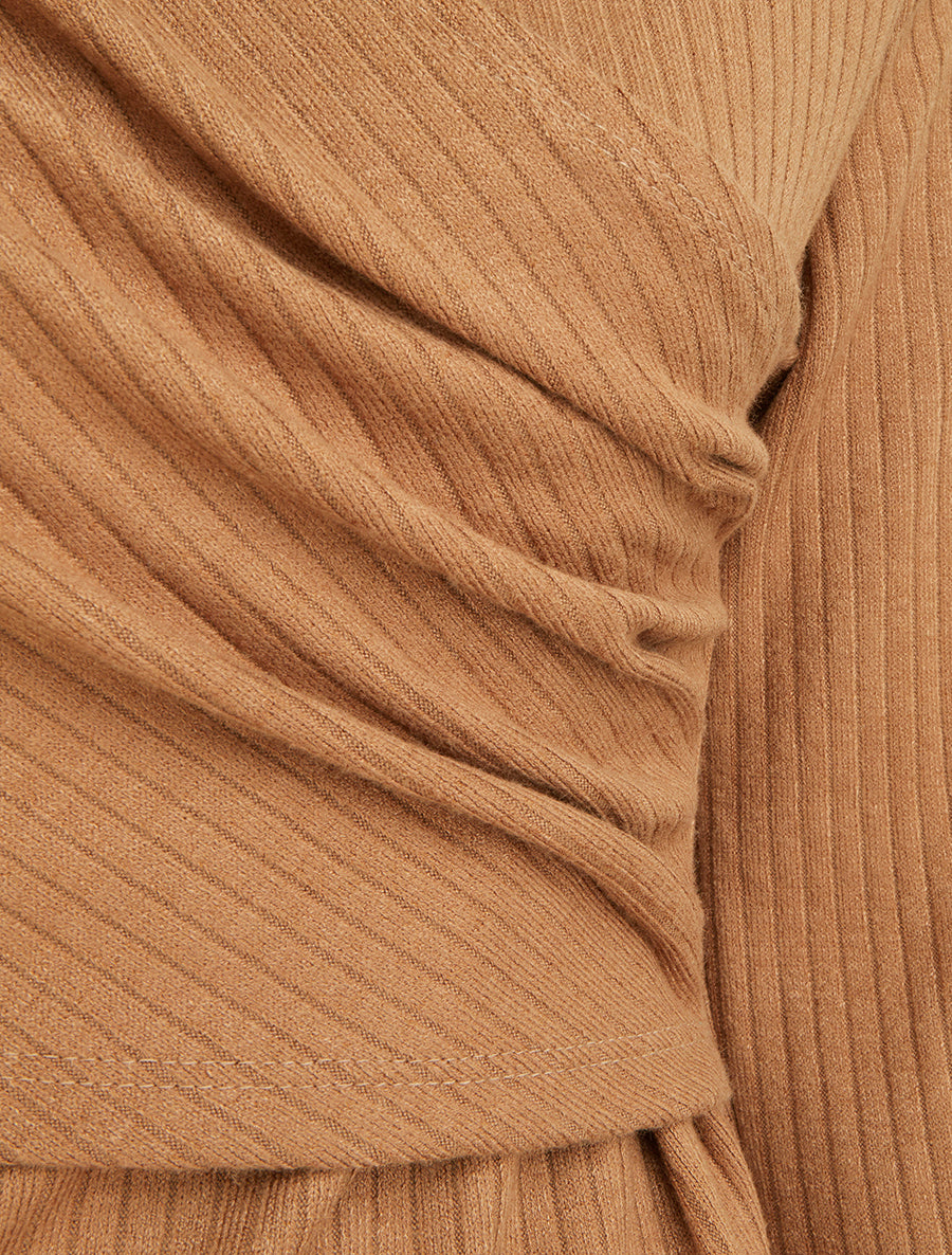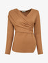 Pull fin côtelé à cache-cœur stylisé - Camel - 2