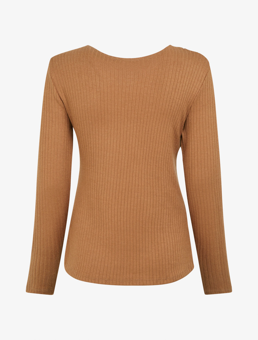 Pull côtelé cache-cœur manches longues - Camel