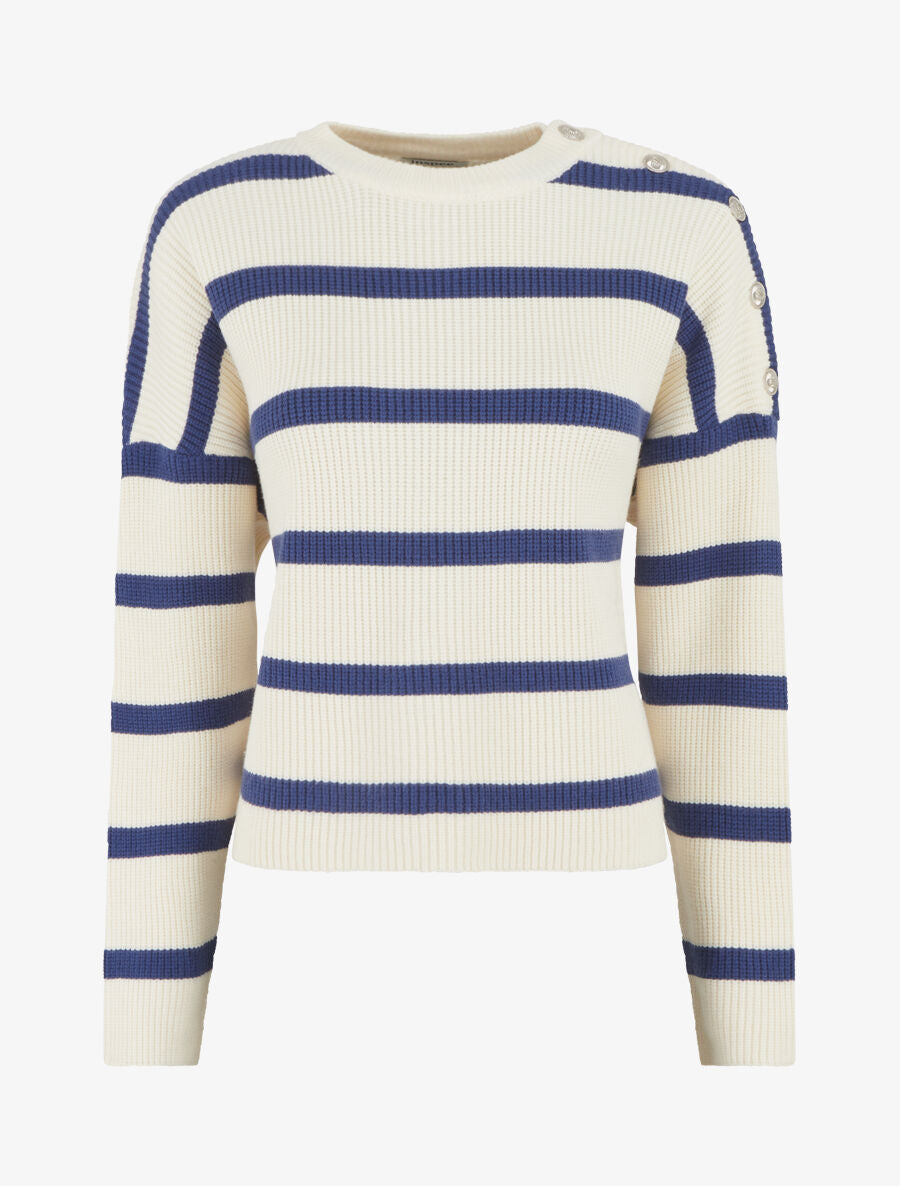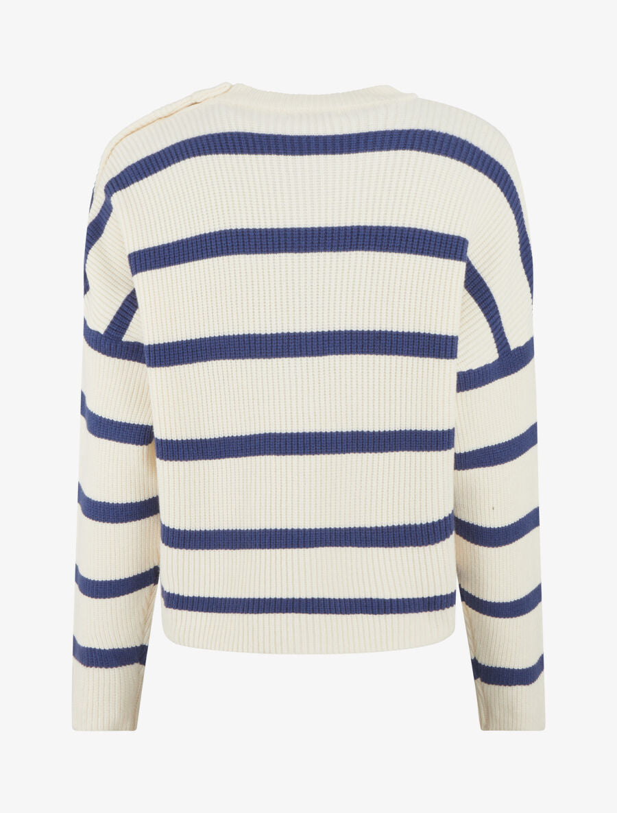 Pull rayures col rond boutons épaule - Blanc