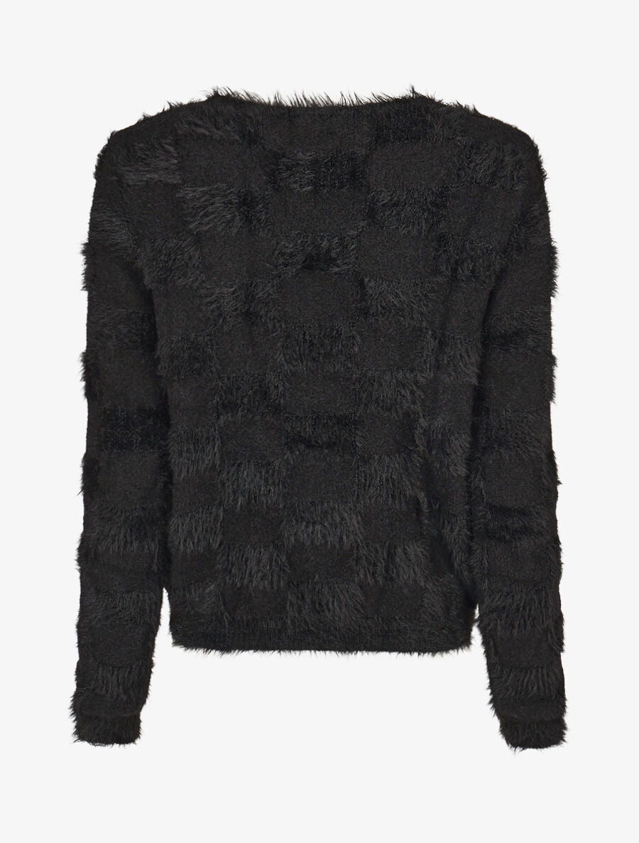 Craquez pour ce pull noir à l'effet mohair ultra-doux qui apporte texture et modernité à votre dressing. Sa coupe droite flatteuse et son col bateau féminin créent une silhouette élégante et intemporelle. Les manches longues et les bords côtelés assurent un tombé impeccable et un confort optimal. Parfait pour vos journées au bureau ou vos sorties décontractées, ce pull se marie idéalement avec un pantalon tailleur ou un jean brut. Une pièce essentielle qui traverse les saisons avec style et polyvalence.