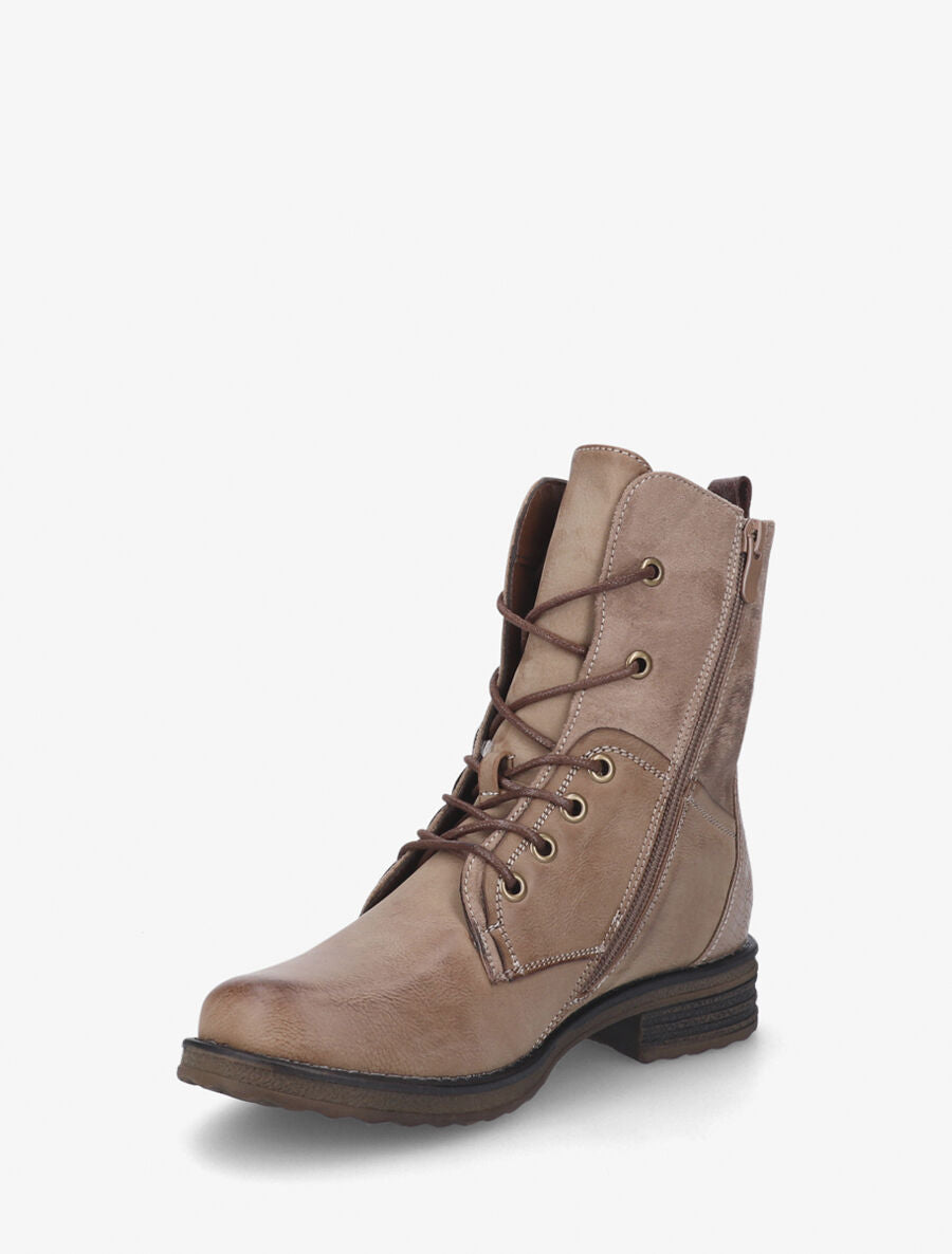 Ces rangers en simili et suédine associent caractère urbain et finitions soignées. Leur contrefort effet python apporte une touche audacieuse, tandis que la cheville en suédine ornée d'un zip décoratif affirme un style moderne. Le talon bloc de 3 cm assure confort et stabilité, complété par une tige de 15 cm et des bouts ronds. La fermeture zippée intérieure facilite l'enfilage. Un modèle polyvalent qui s'impose comme l'allié idéal de vos tenues casual et urbaines, du quotidien aux sorties décontractées.