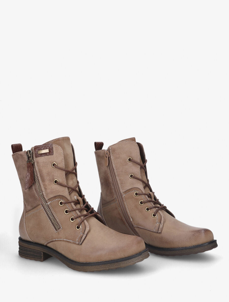 Rangers à zip en simili et suédine - Taupe - 2