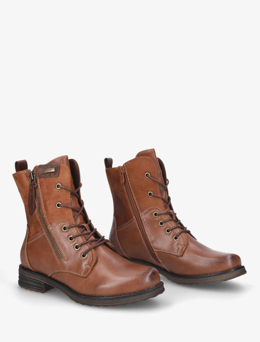 Ces rangers camel allient caractère et modernité avec leur construction bi-matière en simili cuir et suédine. Le contrefort arrière effet python apporte une touche reptile tendance, tandis que le zip décoratif sur la cheville suédine affirme un style urbain affirmé. Montées sur talon bloc de 3 cm avec tige de 15 cm, elles se ferment par lacets et zip intérieur pour un confort optimal. Leurs bouts ronds et leur silhouette structurée s'imposent comme l'atout rock de vos looks automnaux et hivernaux.