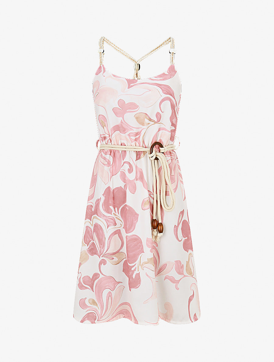 Découvrez cette robe mi-longue à la coupe patineuse flatteuse, confectionnée avec soin en Italie. Son imprimé abstrait rose apporte une touche artistique moderne, tandis que ses bretelles en corde irisée ornées de perles ajoutent une note raffinée. Le dos nageur élastiqué assure un maintien optimal et une liberté de mouvement. La taille élastiquée avec ceinture à nouer permet d'ajuster la silhouette selon vos envies. Son encolure ronde et sa facilité d'enfilage en font une pièce pratique pour toutes les occasions estivales.