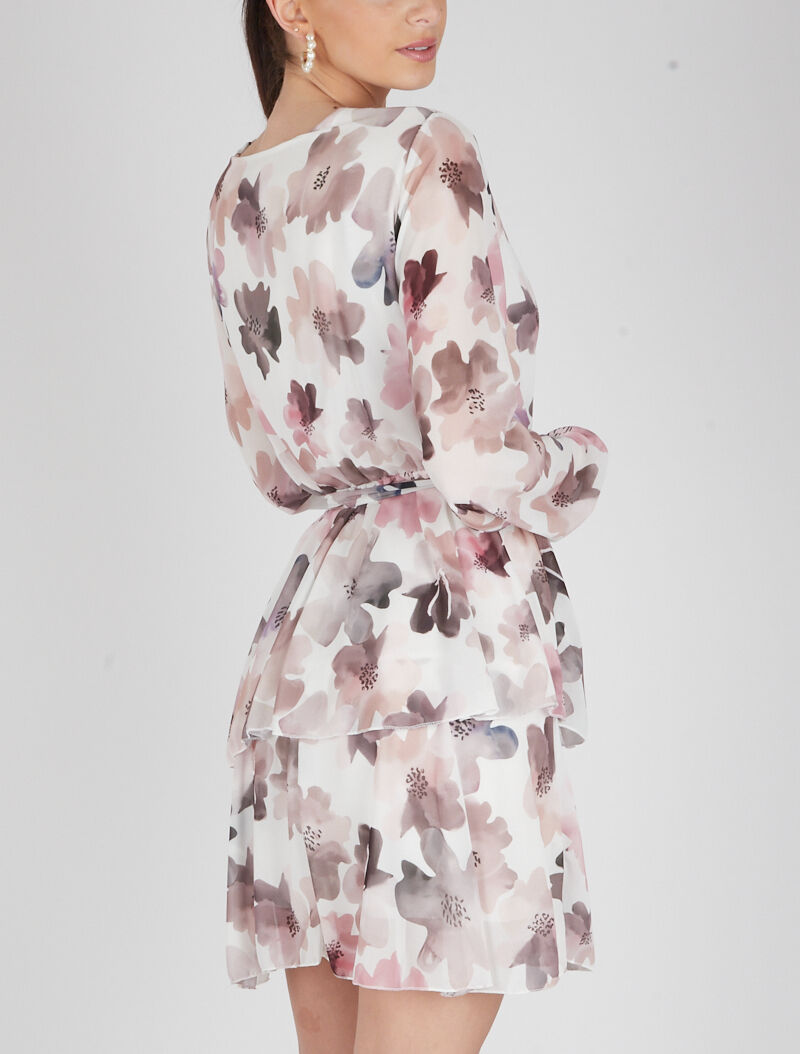 Craquez pour cette robe patineuse à imprimé fleurs graphiques qui sublime votre silhouette. Son encolure cache-cœur flatteuse s'associe à des manches ballon romantiques pour un style féminin affirmé. La taille élastiquée rehaussée d'une ceinture marque joliment la silhouette tandis que la coupe évasée apporte mouvement et légèreté. Parfaite pour vos sorties estivales ou occasions spéciales, cette création italienne en blanc se distingue par sa qualité de confection. Un indispensable de la garde-robe féminine qui traverse les saisons avec élégance.