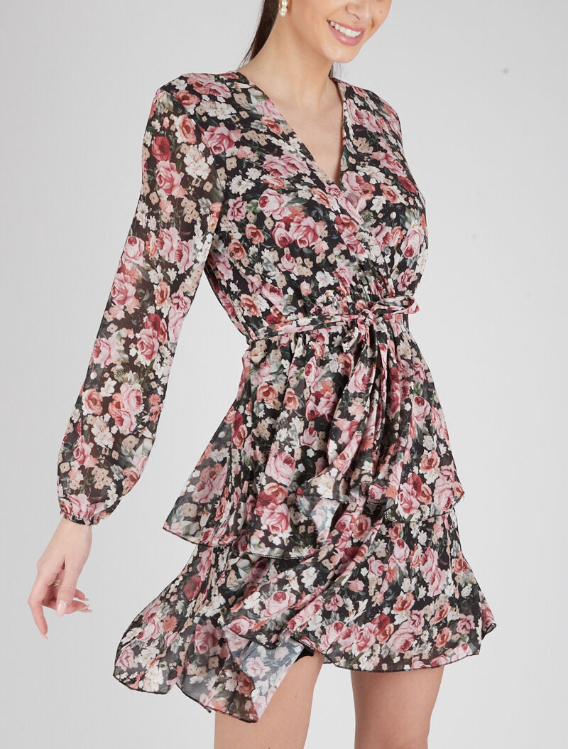 Succombez au charme de cette robe patineuse à imprimé fleurs graphiques. Son encolure cache-cœur flatteuse et ses manches ballon apportent une touche romantique à votre silhouette. La taille élastiquée avec ceinture assure un ajustement parfait et confortable. Confectionnée en Italie avec soin, cette pièce polyvalente se porte aussi bien au bureau qu'en soirée. Sa coupe évasée sublime toutes les morphologies pour un look féminin et moderne.