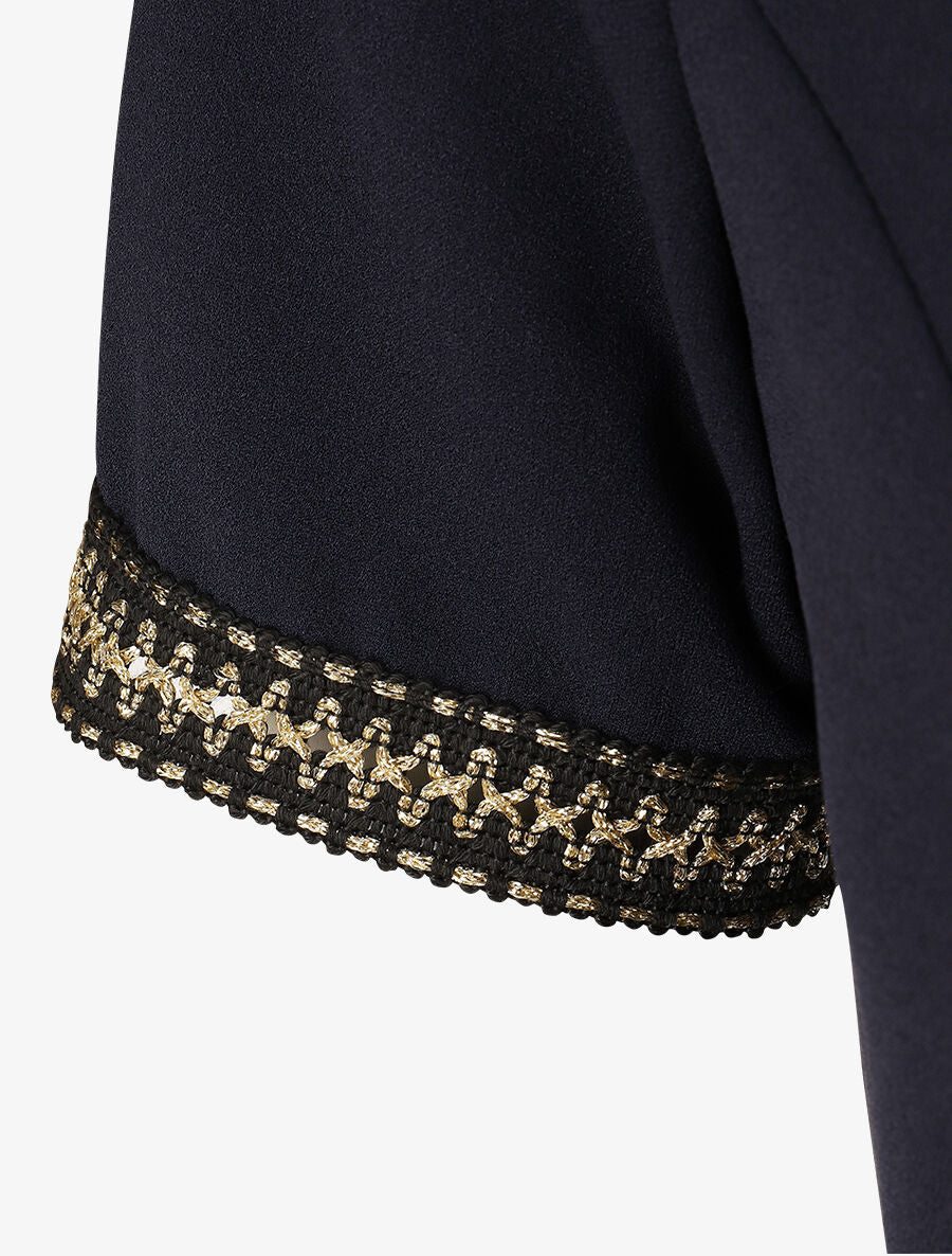 Robe broderie dorée encolure ronde - Marine