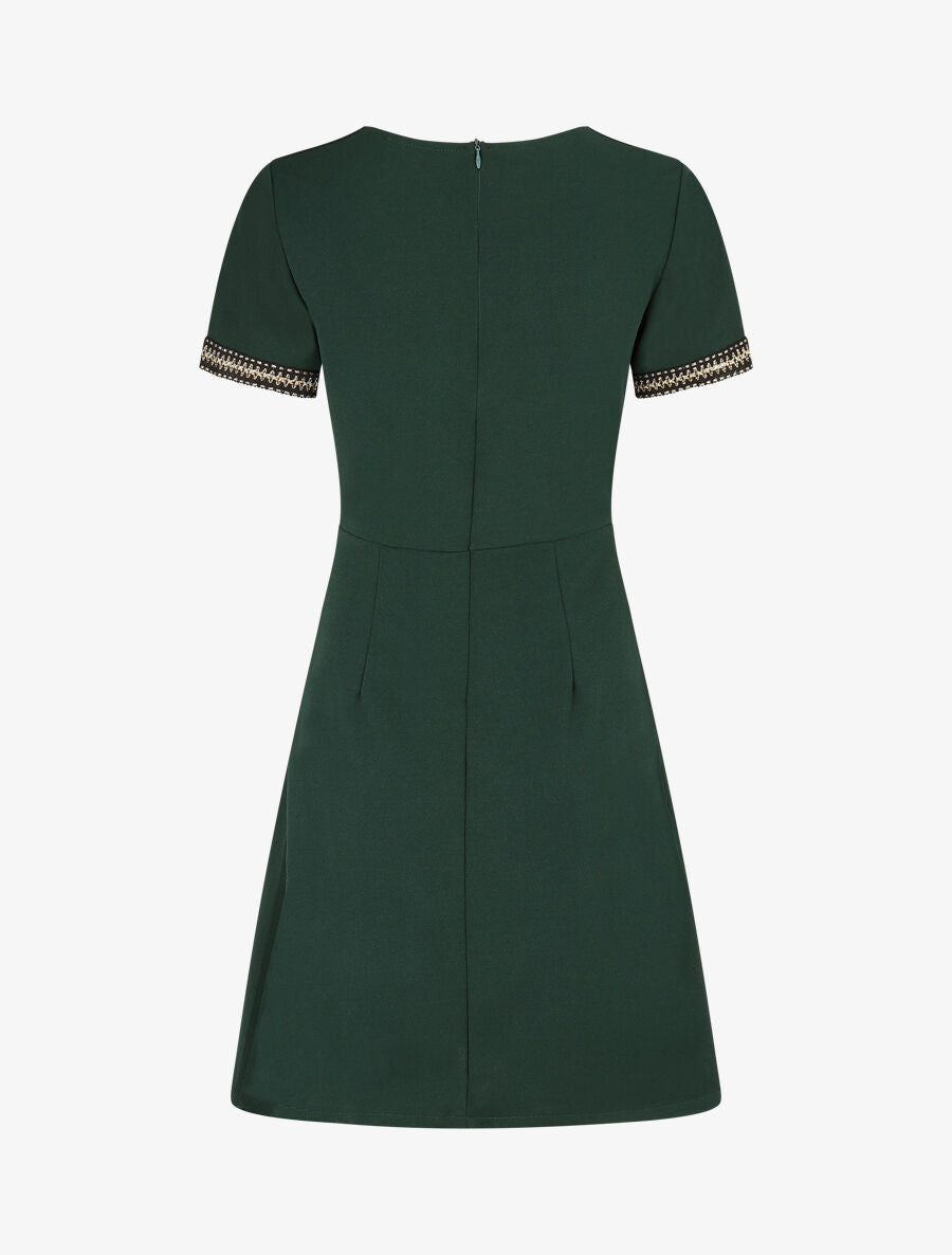 Robe ajustée à broderie dorée - Vert bouteille - 3