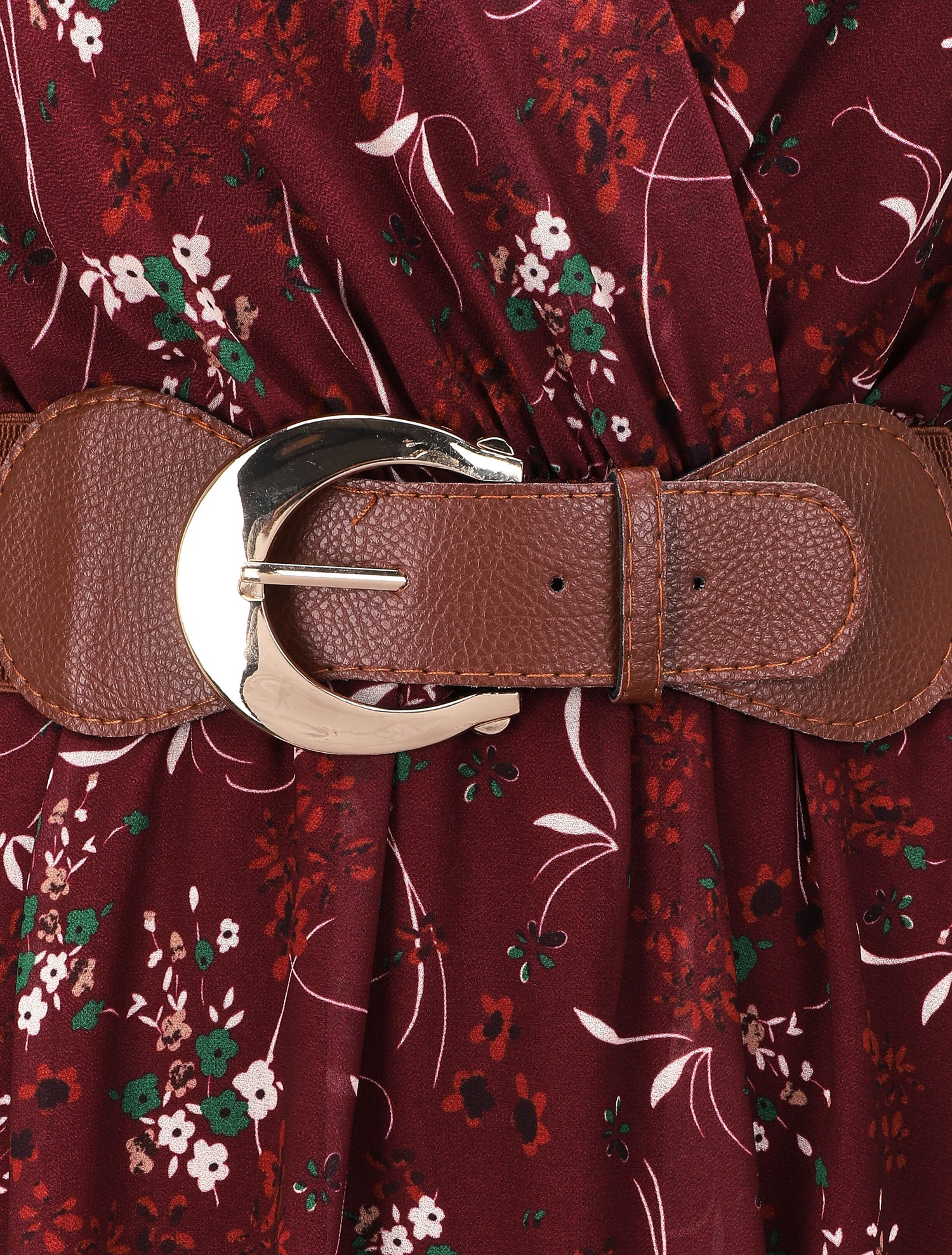 Robe cache-coeur à imprimé petites fleurs - Bordeaux - 3