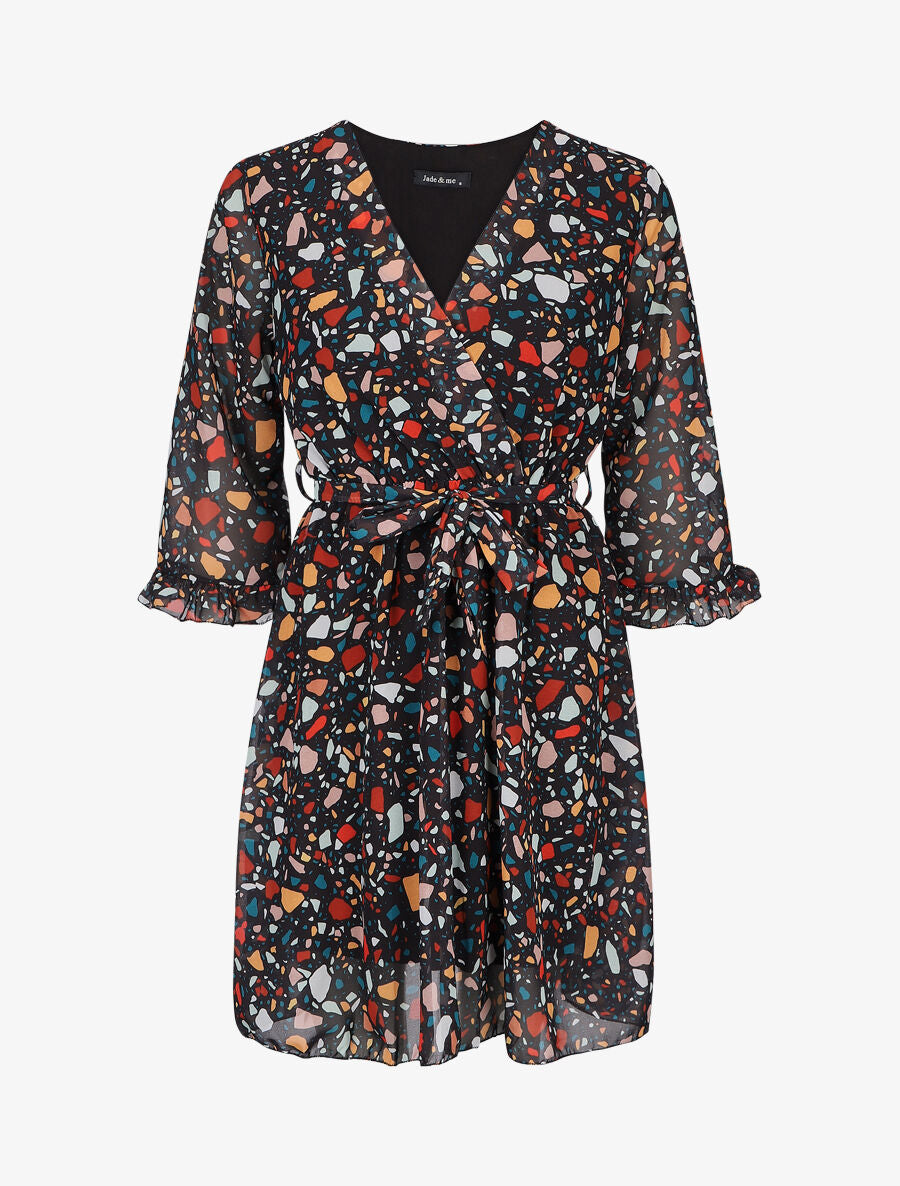 Robe patineuse cache-cœur manches 3/4 - Noir