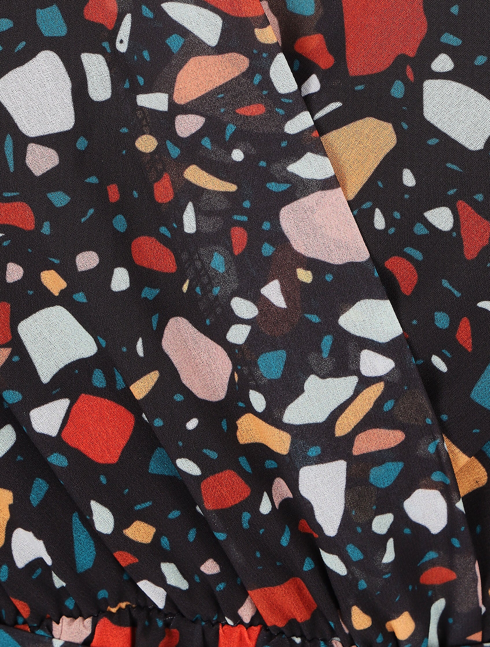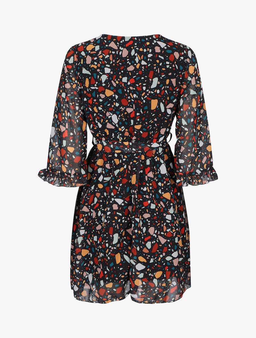 Robe cache-coeur à manches transparentes imprimé graphique - Noir - 4