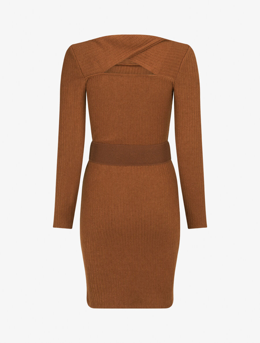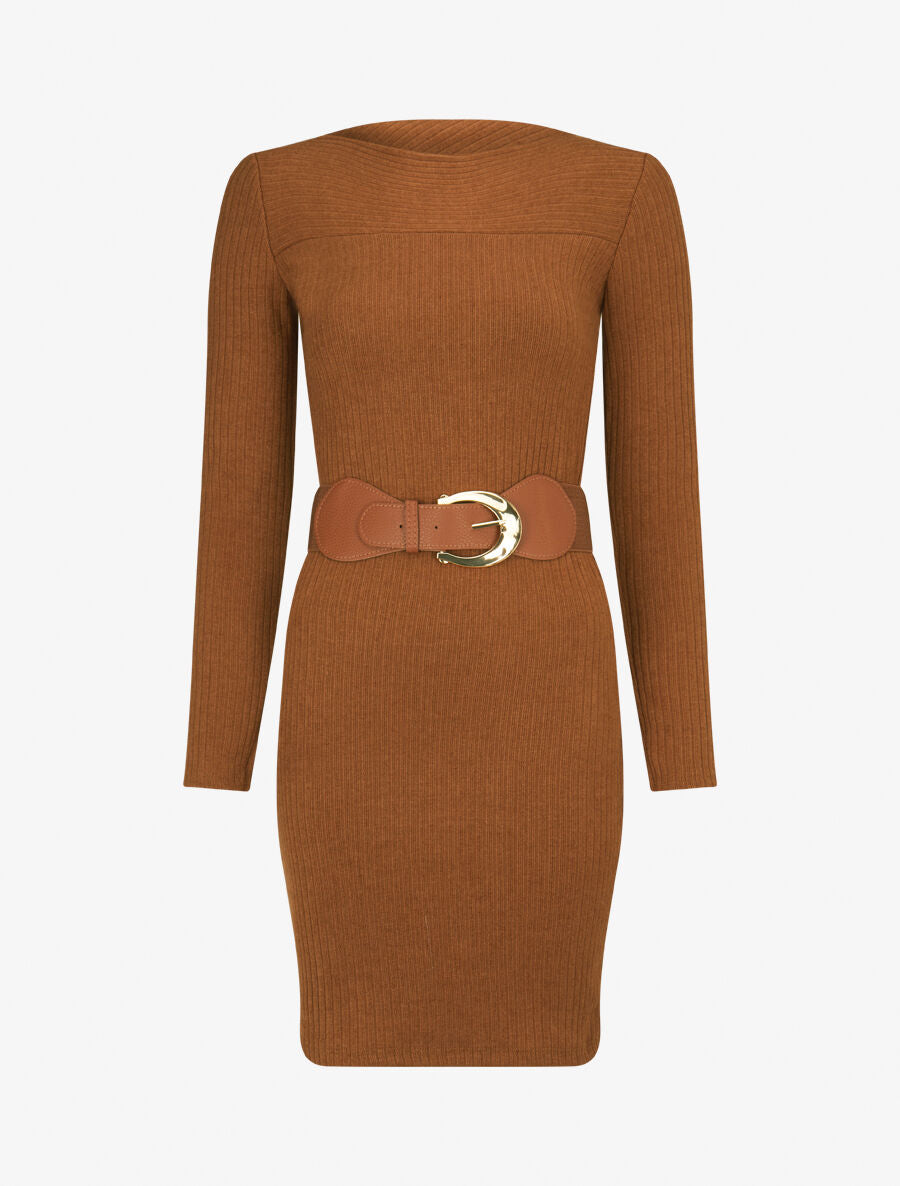 Découvrez cette robe côtelée qui sublime votre silhouette grâce à sa coupe moulante parfaitement ajustée. Son encolure bateau élégante et ses manches longues apportent une touche sophistiquée, tandis que le dos ajouré orné d'un nœud décoratif crée un détail raffiné et féminin. Facile à enfiler, cette création italienne est accompagnée d'une ceinture pour marquer la taille selon vos envies. Parfaite pour vos sorties en soirée ou vos rendez-vous importants, elle deviendra rapidement une pièce incontournable de votre garde-robe automnale et hivernale.