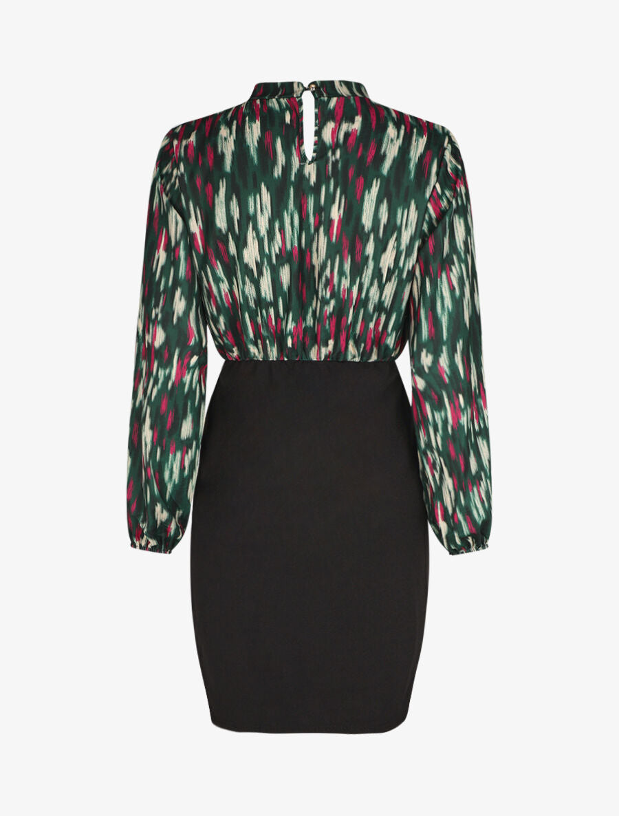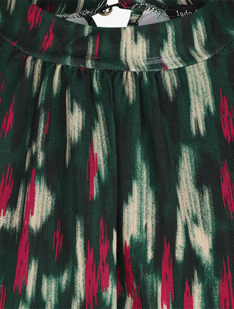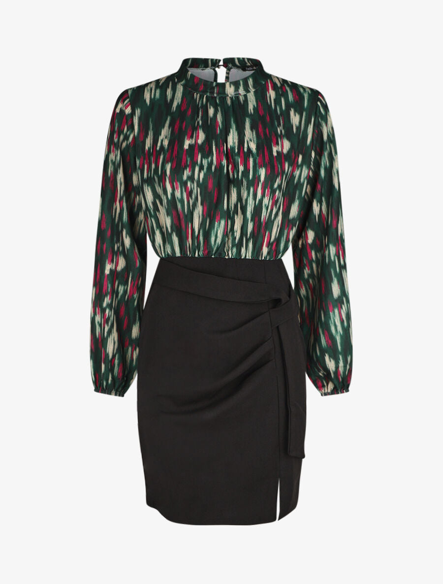 Robe courte ajustée à noeud et imprimé abstrait - Vert - 2