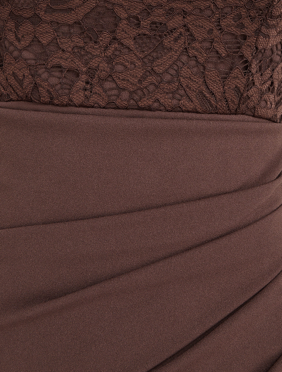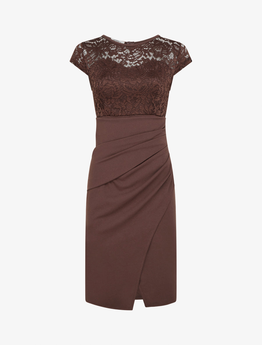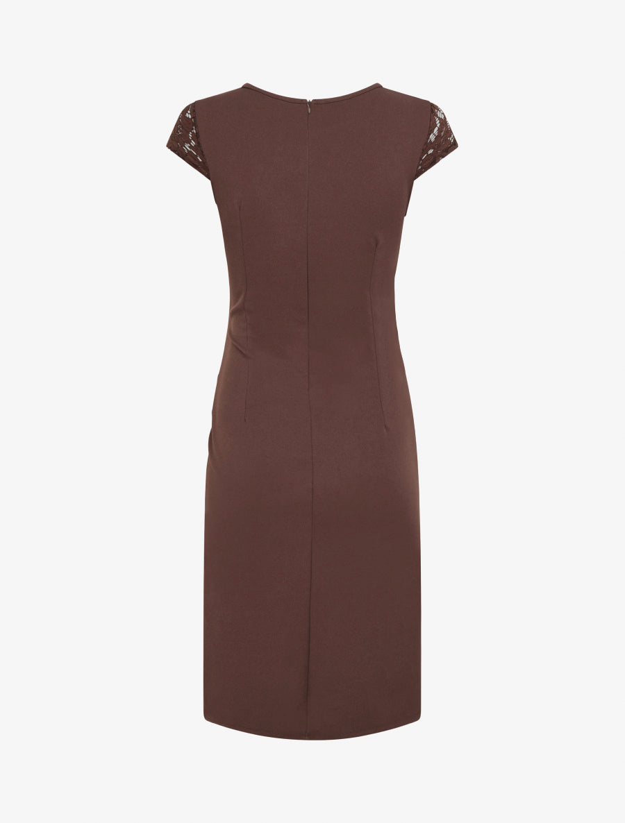 Découvrez cette robe coupe droite au charme raffiné, confectionnée en Italie avec un savoir-faire d'exception. Le buste et les mancherons en dentelle apportent une touche féminine et délicate, tandis que la taille effet drapé sublime la silhouette. Les pans style portefeuille créent un jeu de volumes moderne et sophistiqué. Le col rond et la fermeture zippée au dos assurent un confort optimal. Réalisée dans une matière stretch alliant polyester et élasthanne, cette création italienne garantit aisance et élégance tout au long de la journée. Parfaite pour vos occasions spéciales ou vos rendez-vous professionnels.