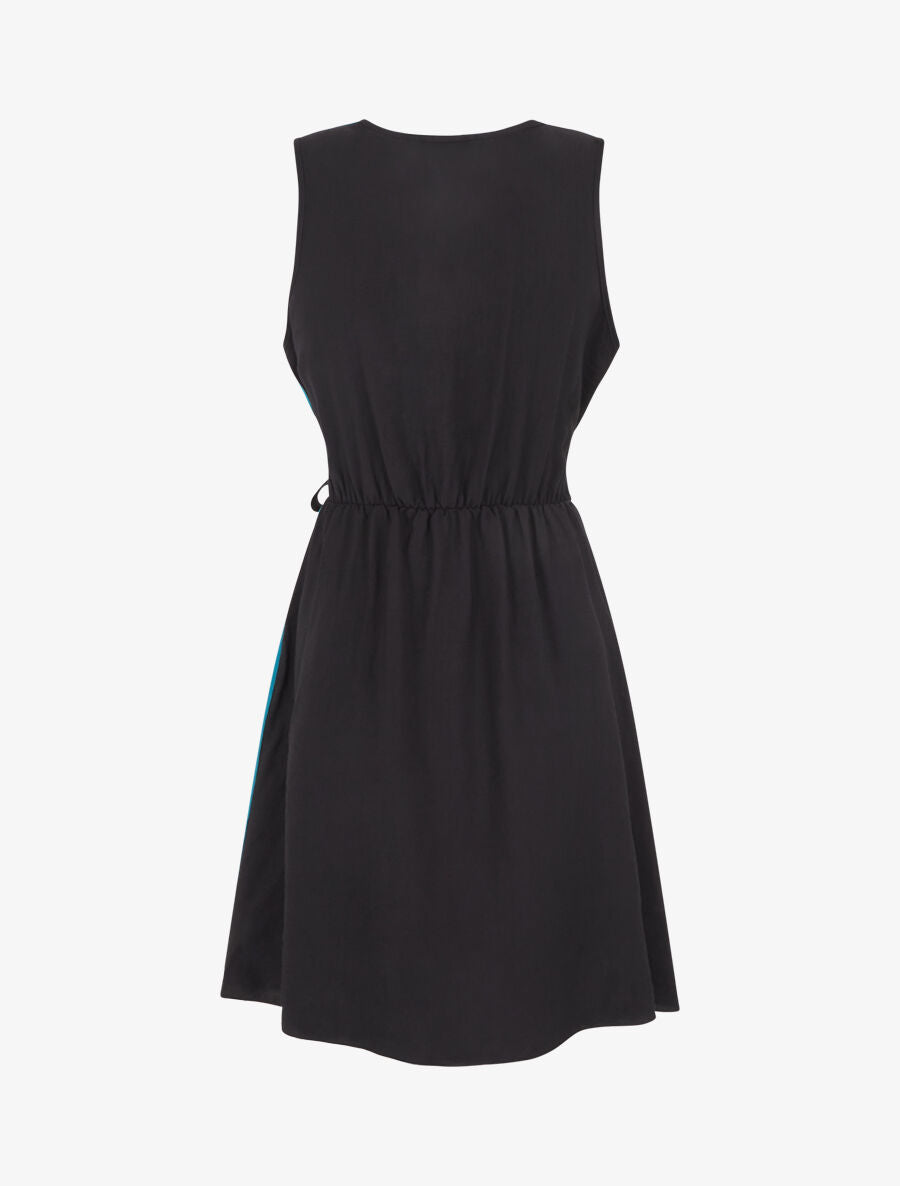 Découvrez cette robe patineuse au charme intemporel, confectionnée avec soin en Italie. Son encolure cache-cœur et ses liens à nouer subliment la silhouette, tandis que la taille élastiquée assure un confort optimal. Le design bicolore apporte une touche moderne à cette pièce sans manches, facile à enfiler. Sa coupe patineuse flatteuse convient parfaitement aux occasions professionnelles comme aux sorties décontractées. Fabriquée dans une matière stretch alliant polyester et élasthanne, cette robe combine style et praticité au quotidien.