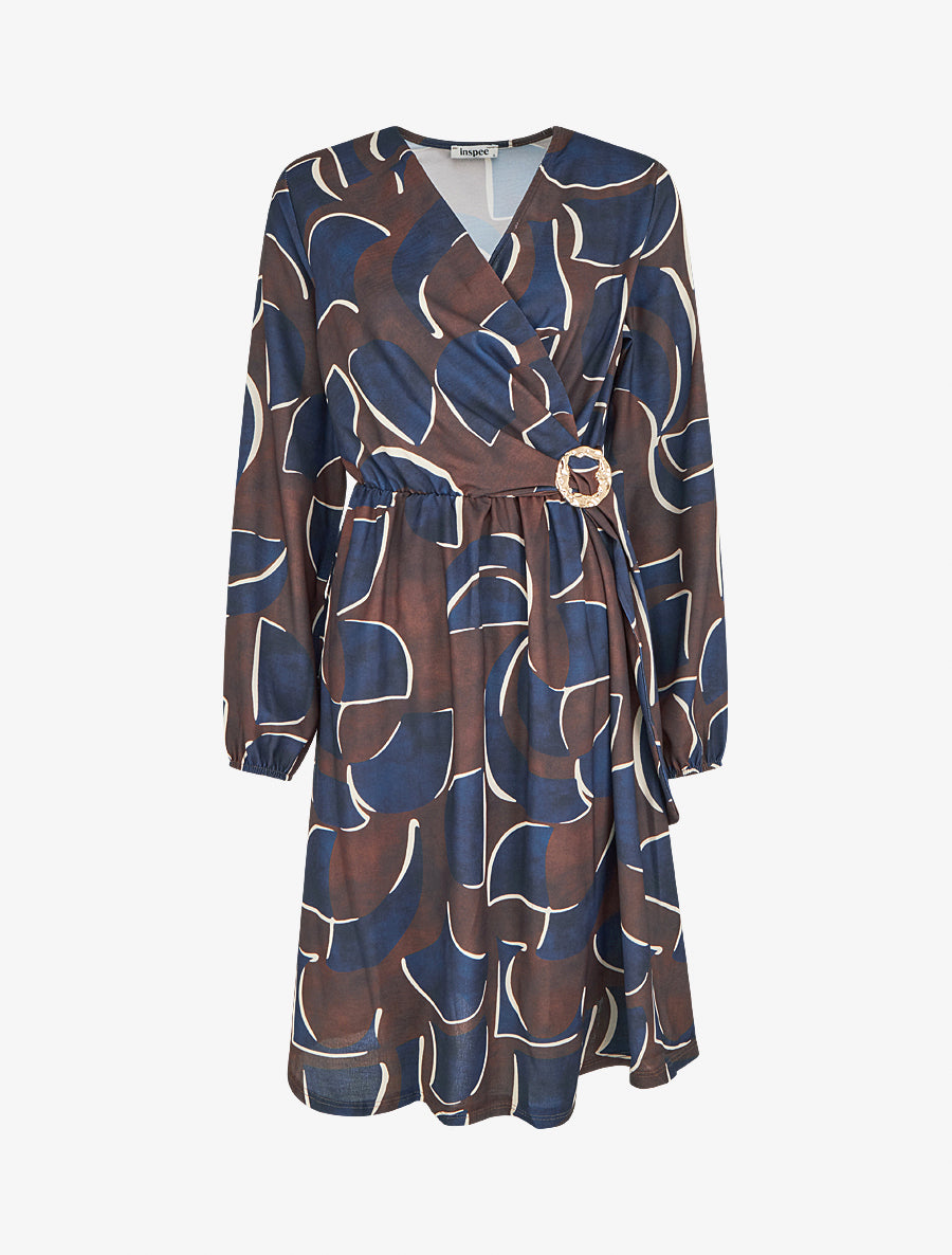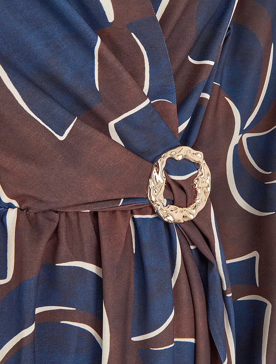 Robe fluide cache-cœur imprimé abstrait - Marine