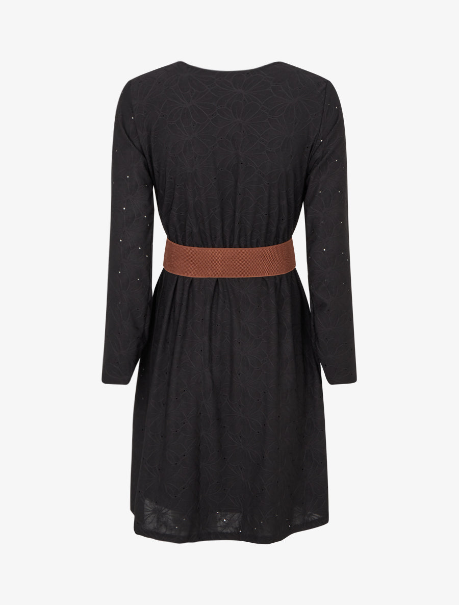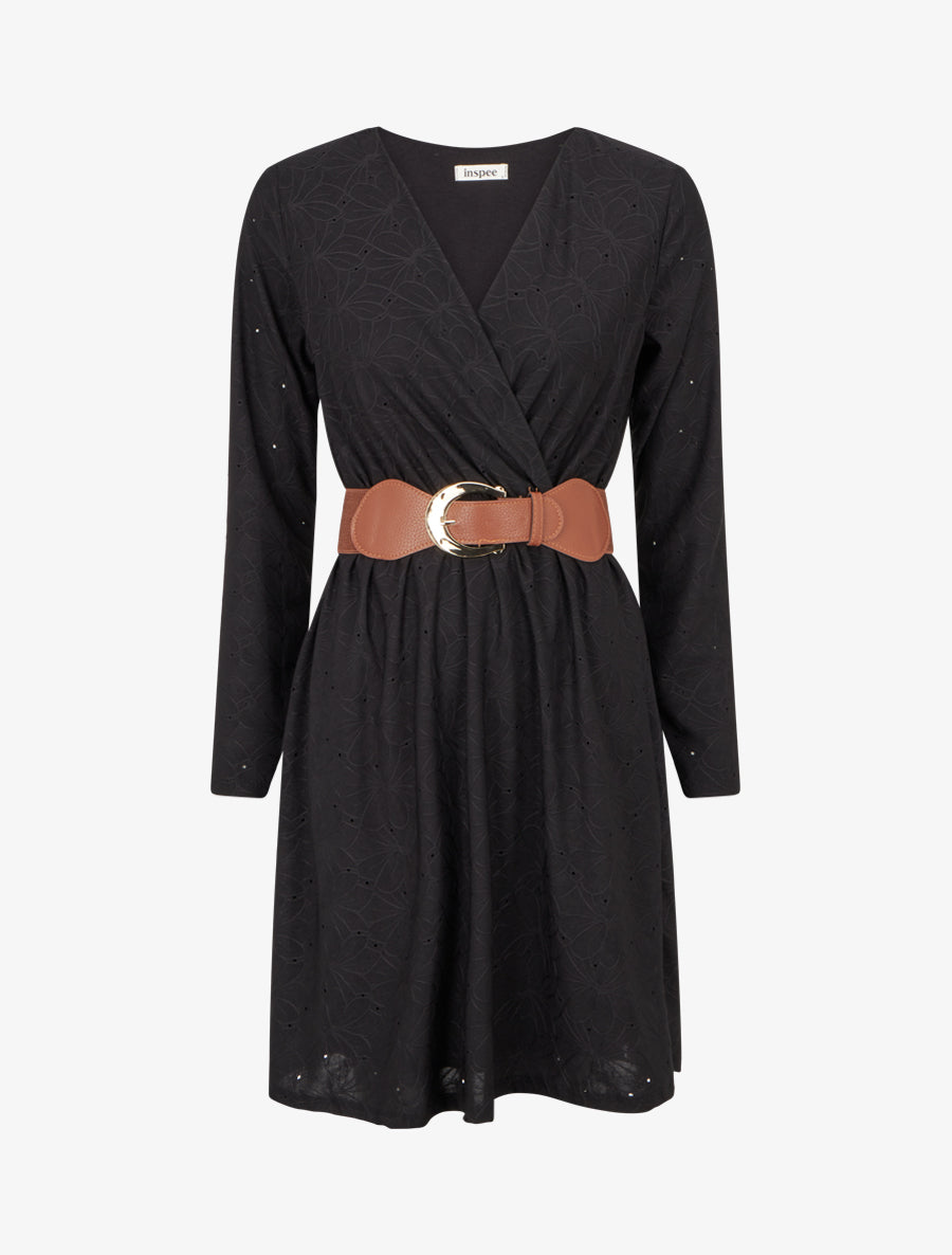 Découvrez cette robe évasée à l'encolure cache-cœur sophistiquée, sublimée par de délicates broderies florales. Confectionnée en Italie, elle présente des manches longues et une taille élastiquée pour un confort optimal. Sa coupe évasée flatteuse est rehaussée par une ceinture incluse qui marque la silhouette. Entièrement doublée, cette pièce à enfiler allie praticité et raffinement. Parfaite pour vos occasions spéciales ou vos journées au bureau, elle apporte une touche féminine à votre garde-robe luxembourgeoise.