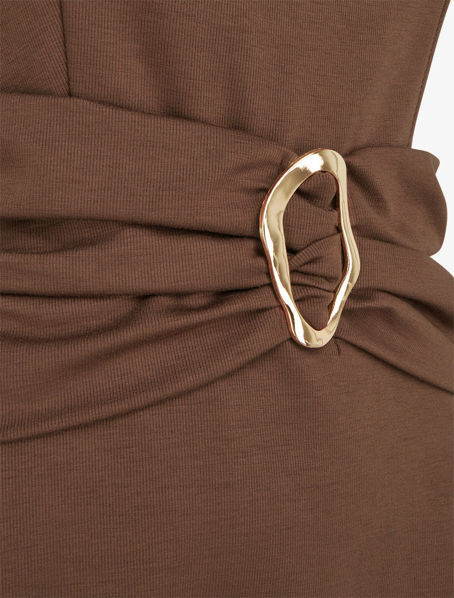 Robe évasée taille froncée à boucle - Marron