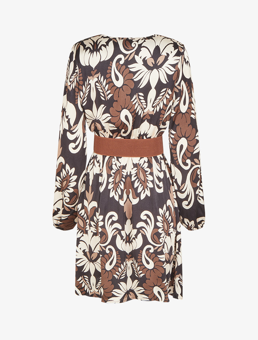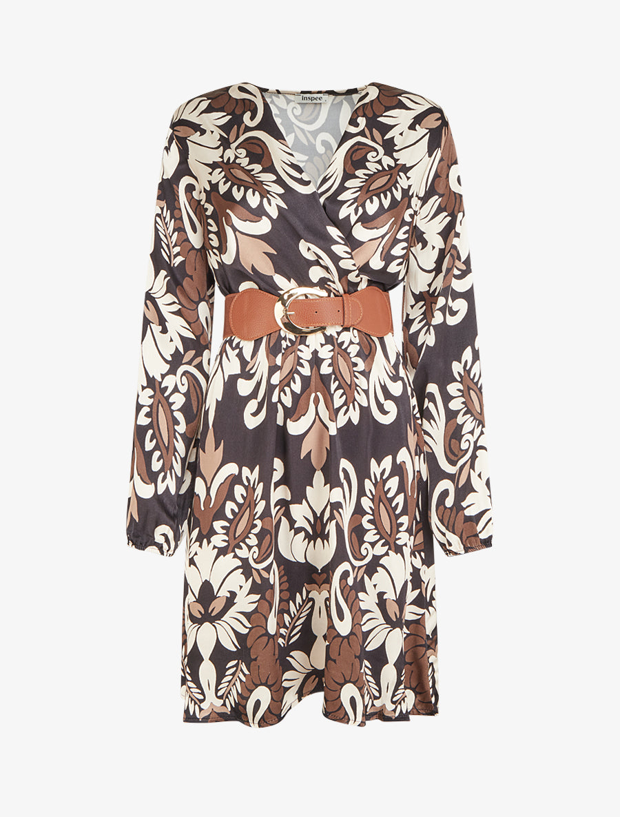 Robe cache-cœur satinée motif arabesque - Noir