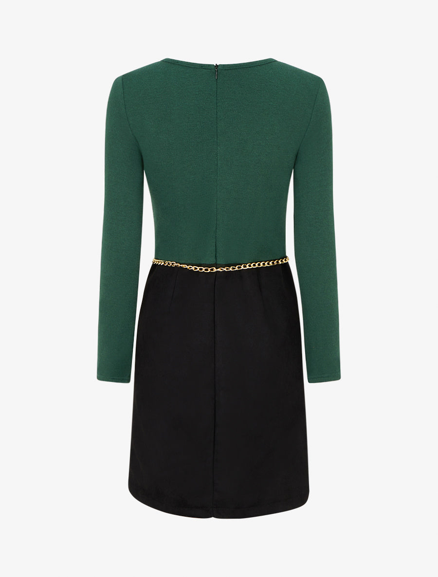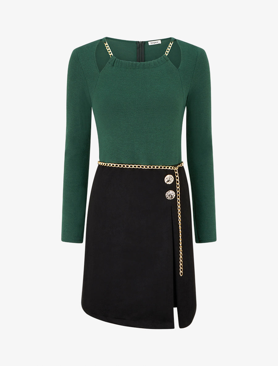 Robe fendue à col détail chaînes - Vert sapin - 1