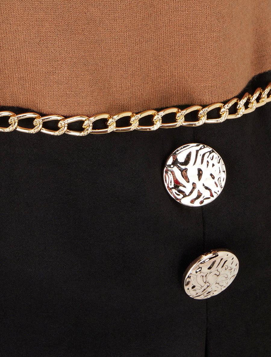 Robe droite suédine col chaînes - Camel