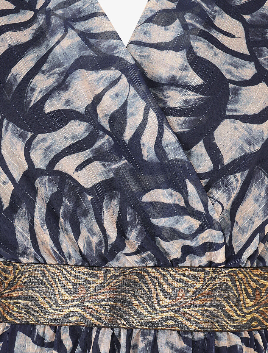 Robe cache-cœur patineuse fleurie irisée - Marine