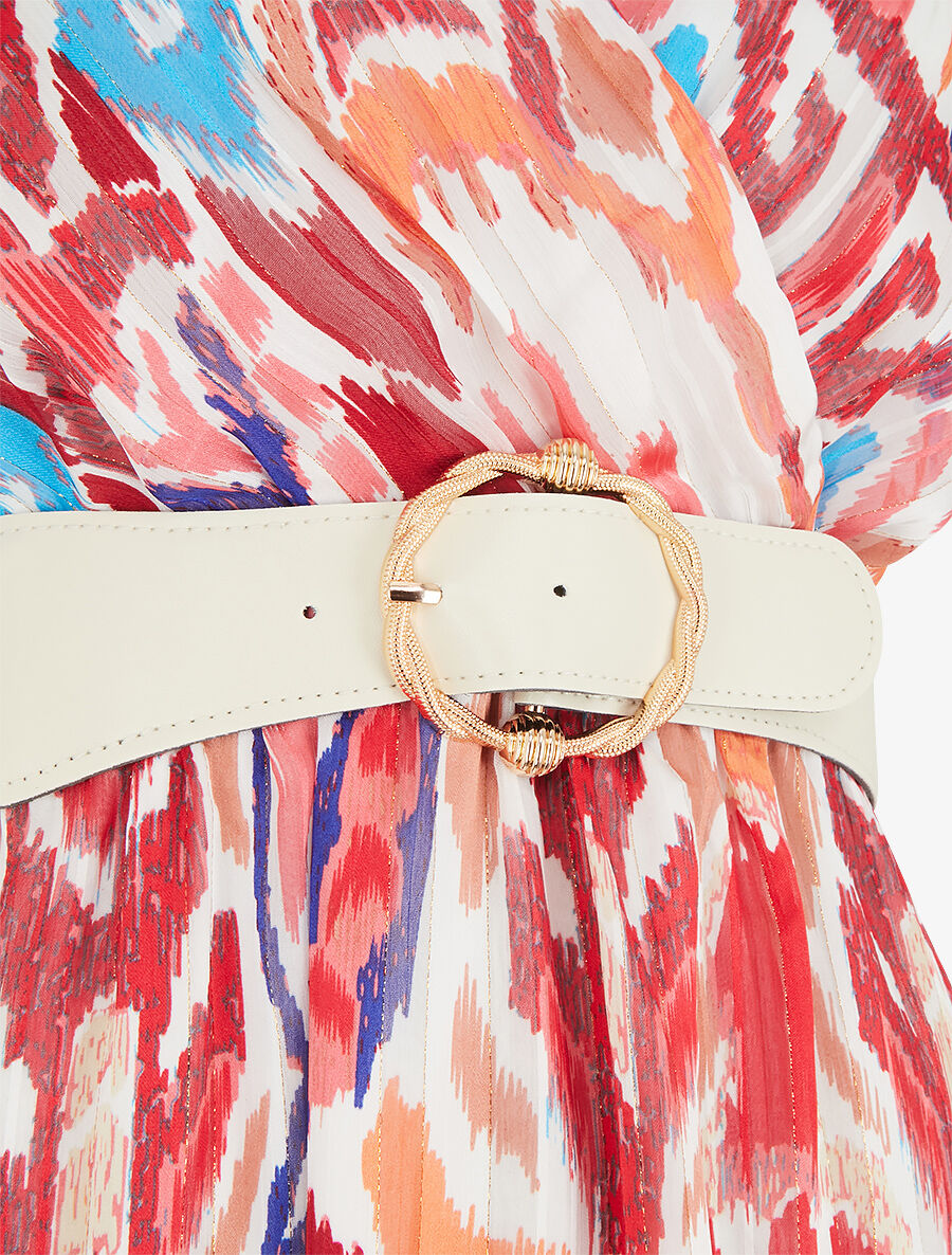 Robe imprimé abstrait irisé à taille élastiquée - Rouge - 3