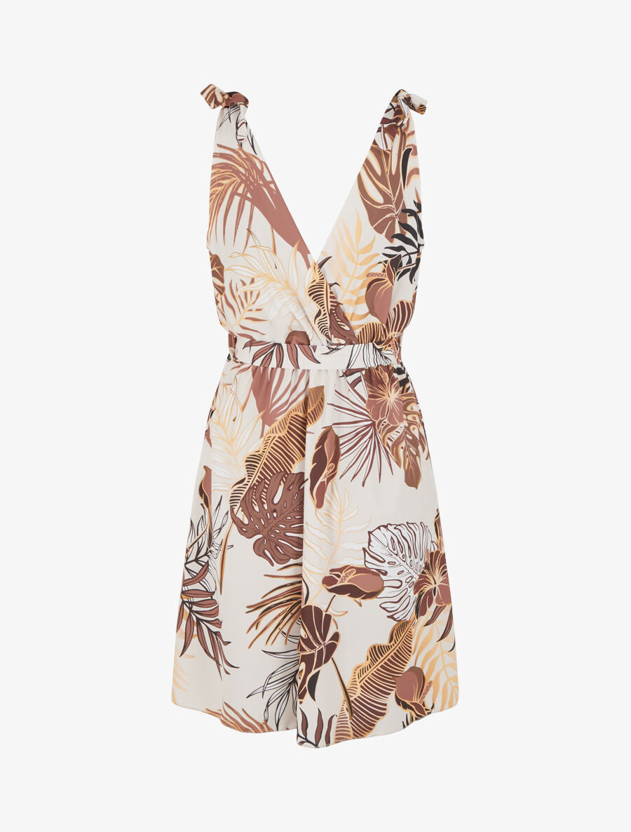 Robe patineuse imprimé tropical cache-cœur - Beige
