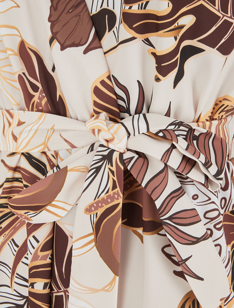 Robe imprimé feuillage à col cache-coeur - Beige - 2